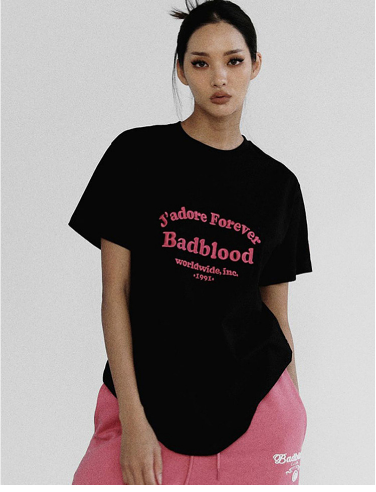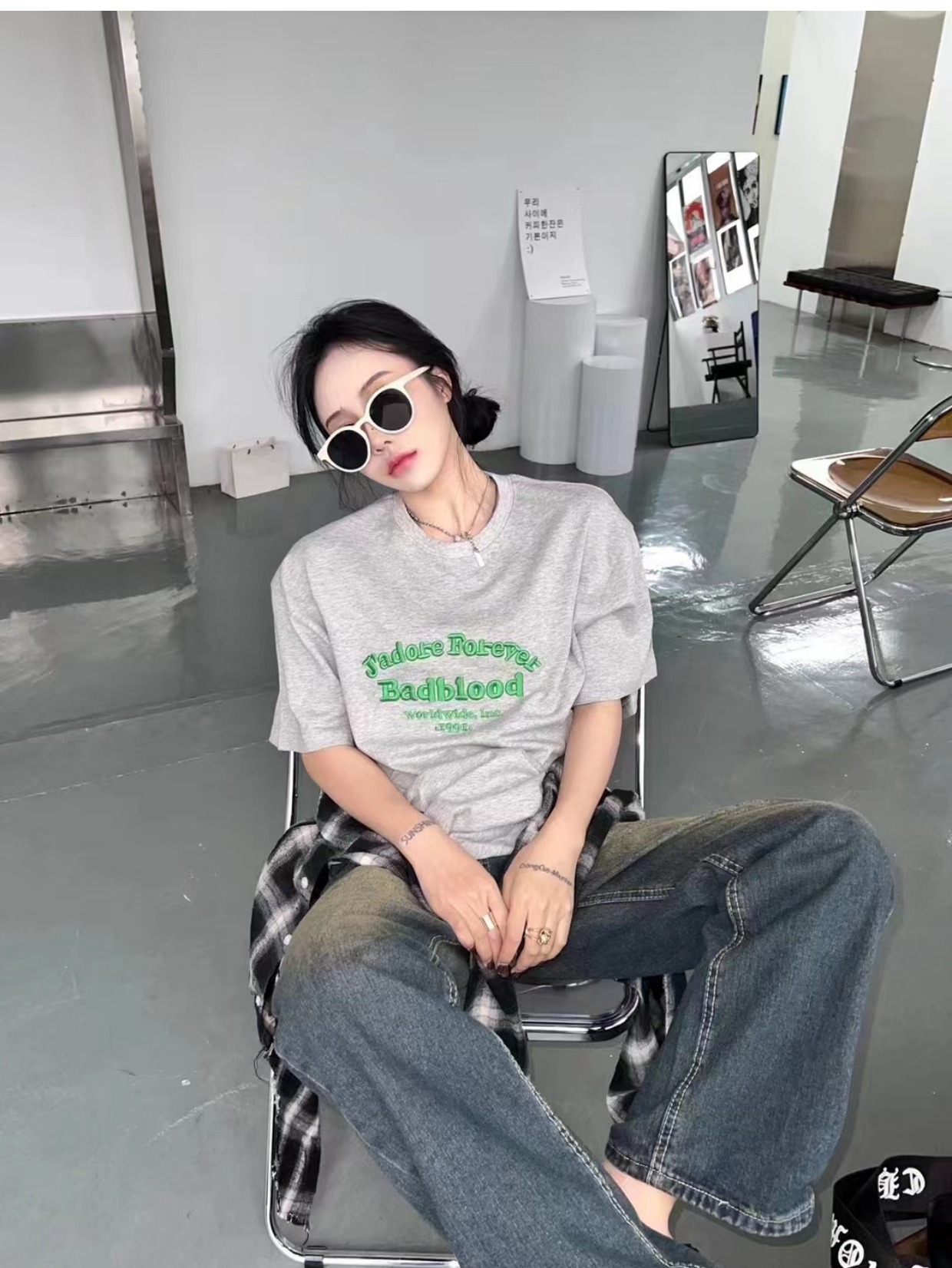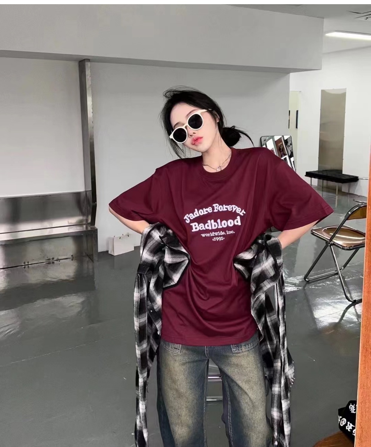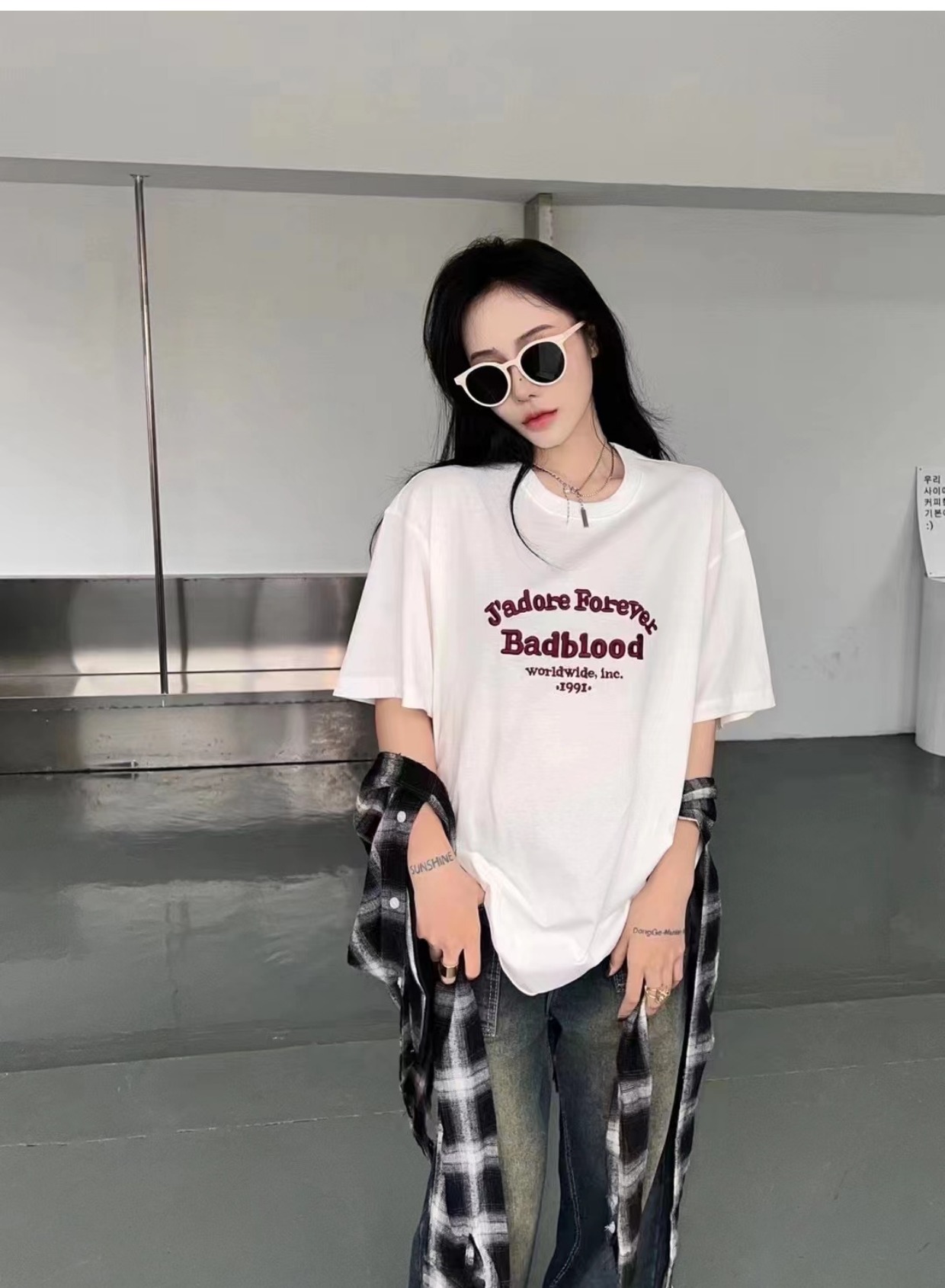 바드 블러드 라운드 넥 반팔 티셔츠 여성용 트렌디 브랜드 클래식 편지 자수 루즈 오버 사이즈 탑스토어 가기