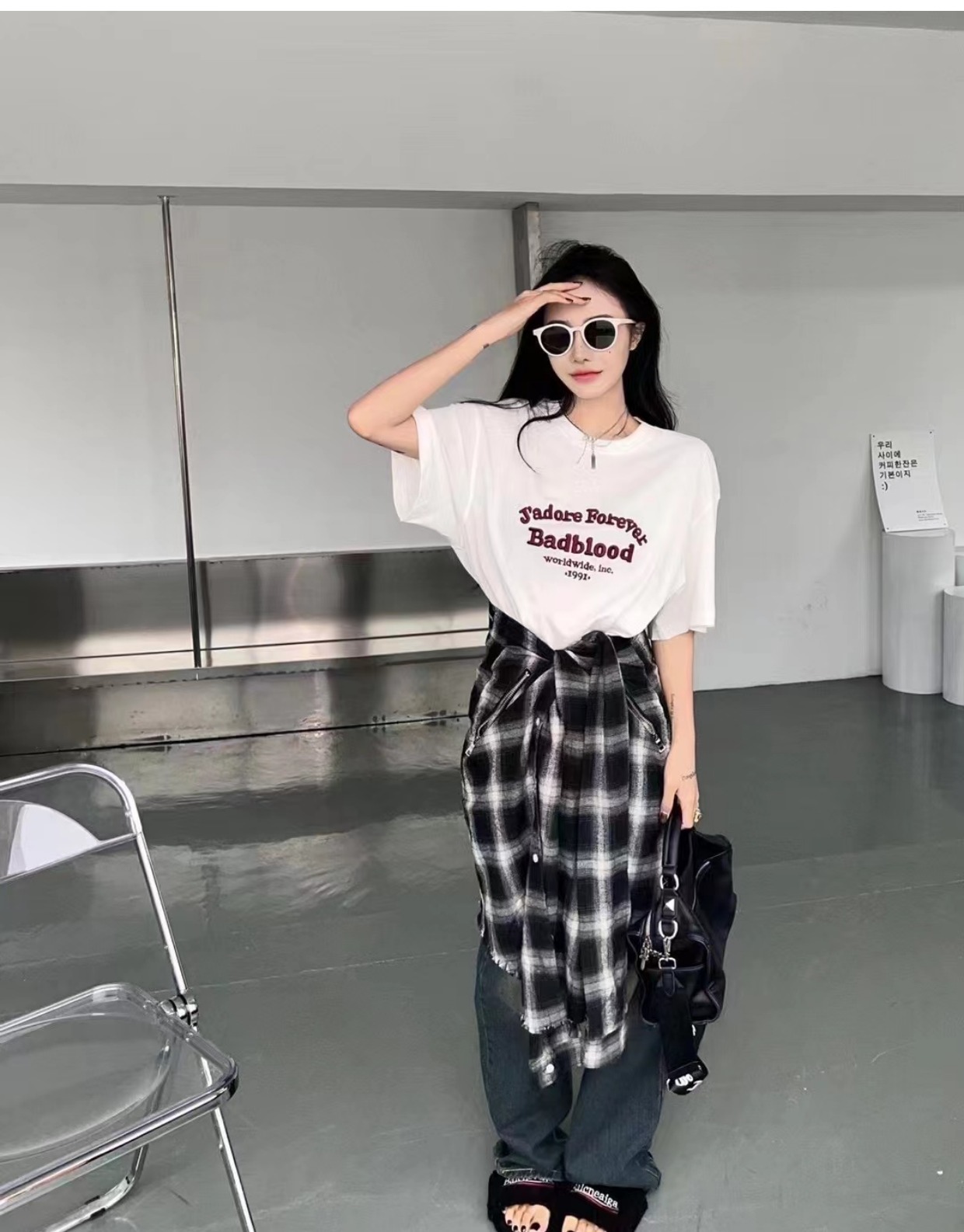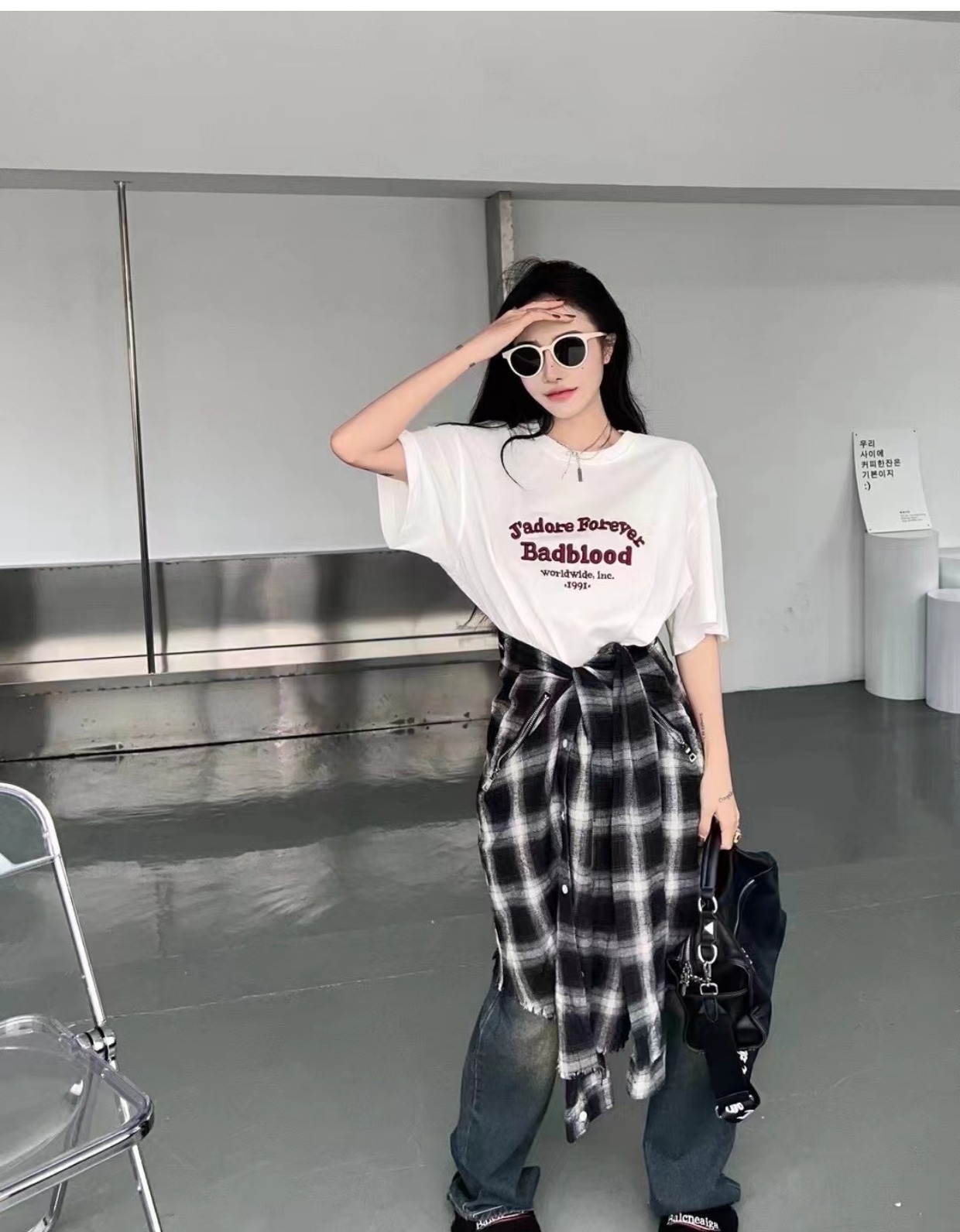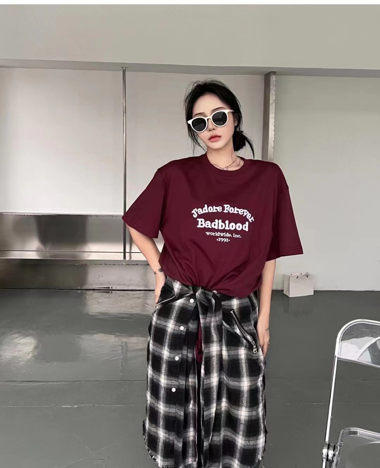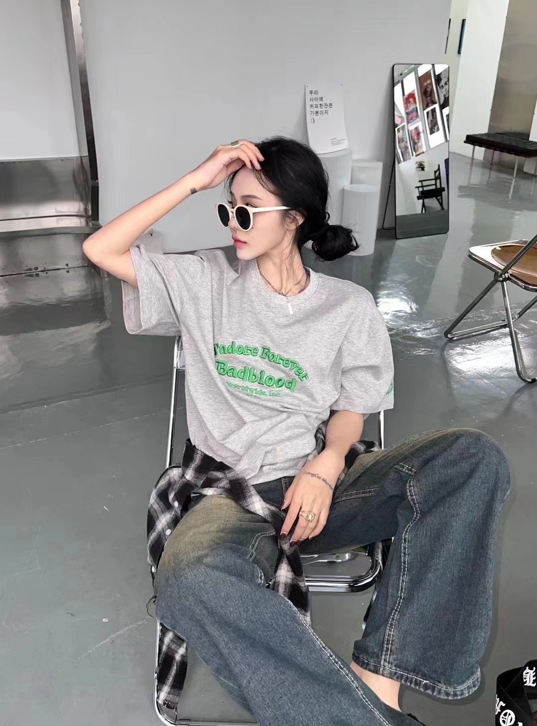 바드 블러드 라운드 넥 반팔 티셔츠 여성용 트렌디 브랜드 클래식 편지 자수 루즈 오버 사이즈 탑스토어 가기