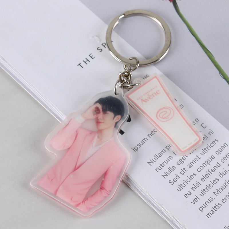 아크릴 열쇠 고리 맞춤형 만화 별 주변 장치 카드 양면 광고 체인 선물 펜던트 커스텀