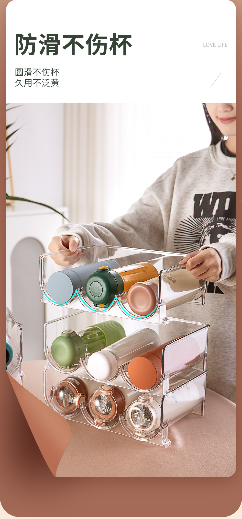 워터 컵 스토리지 랙 다층 스토리지 랙 투명 데스크탑 크리에이티브 쌓을 수있는 컵 홀더 가정용 방진 및 단열 컵