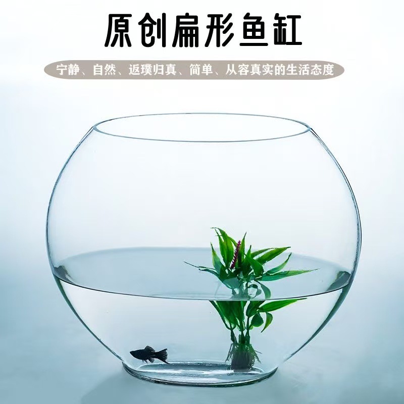 【단일 배송】창의적인 평평한 입구 유리 어항 타원형 고급 투명 유리 금붕어 어항 미니 테이블스토어 가기