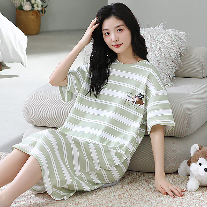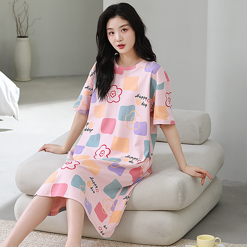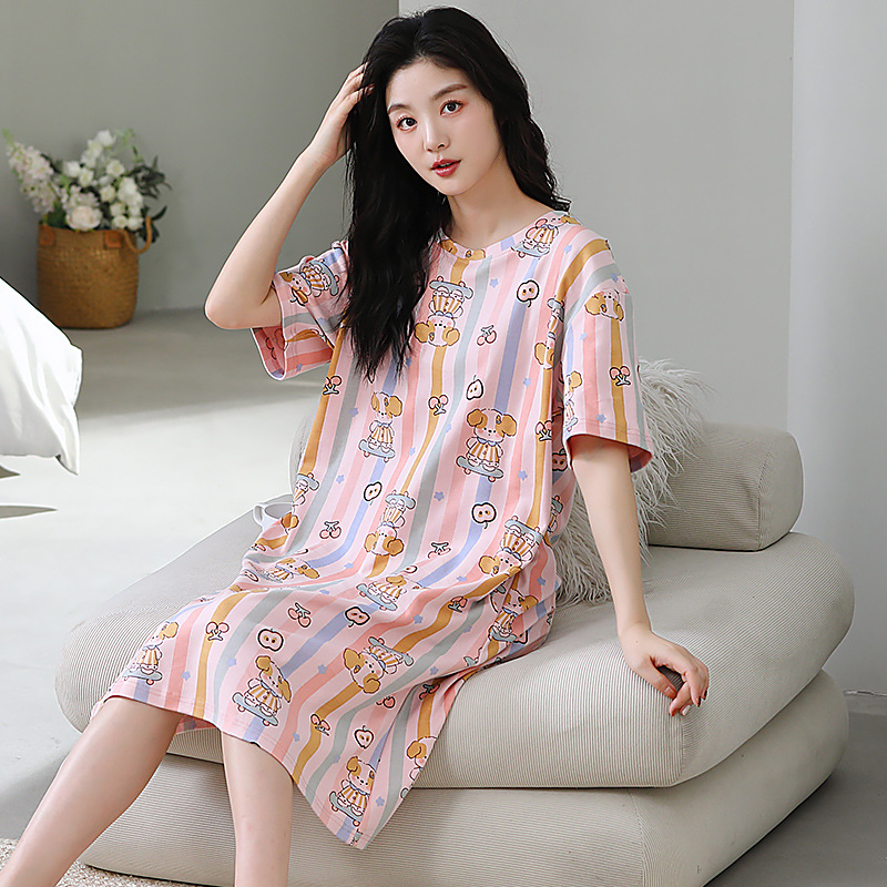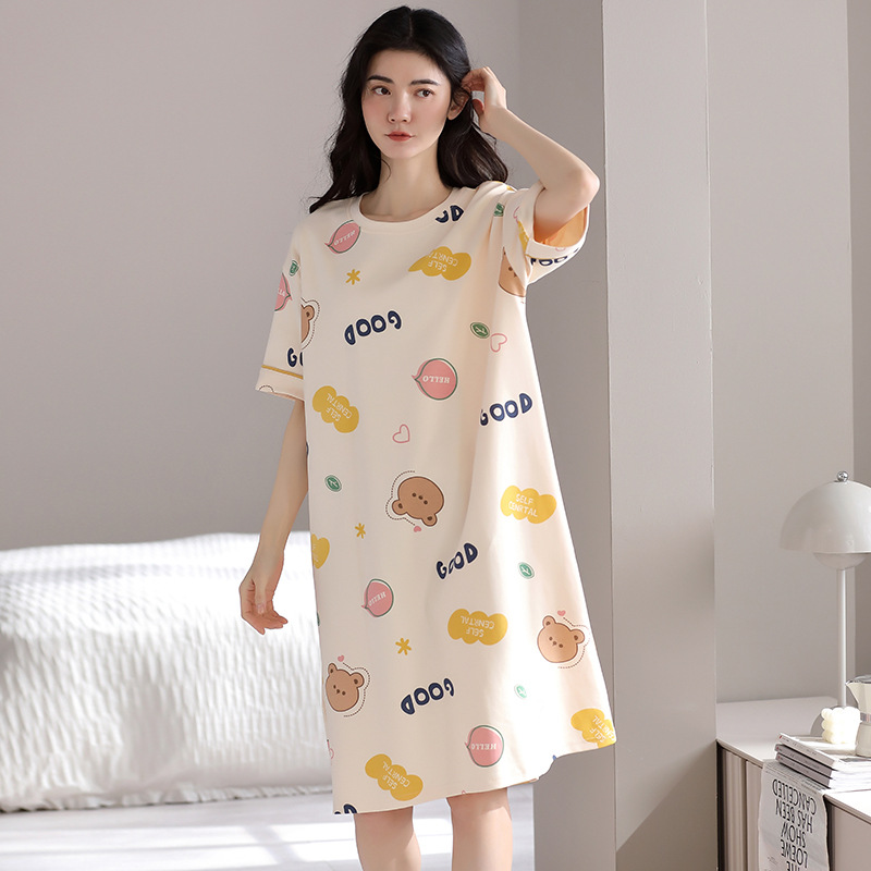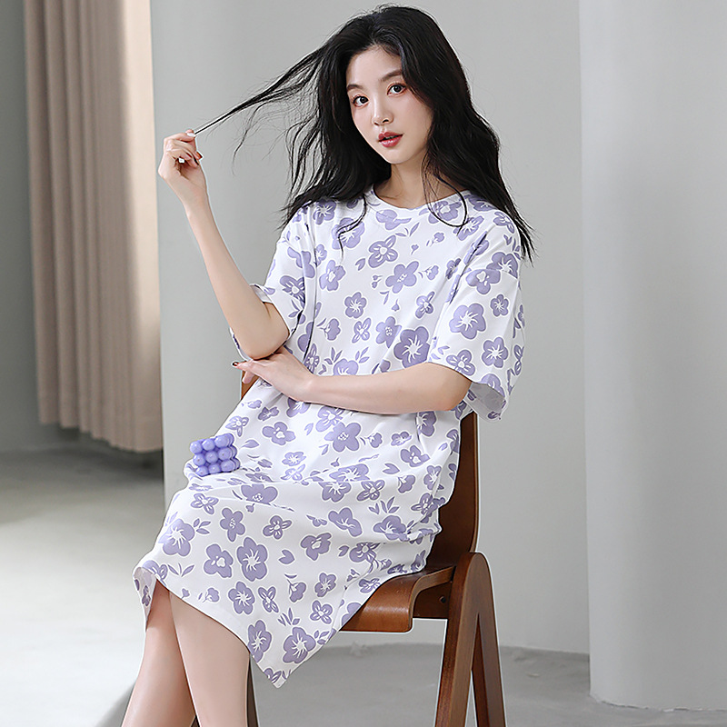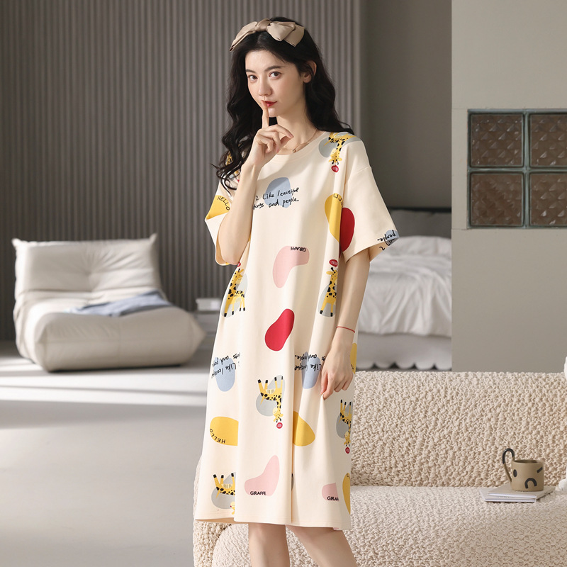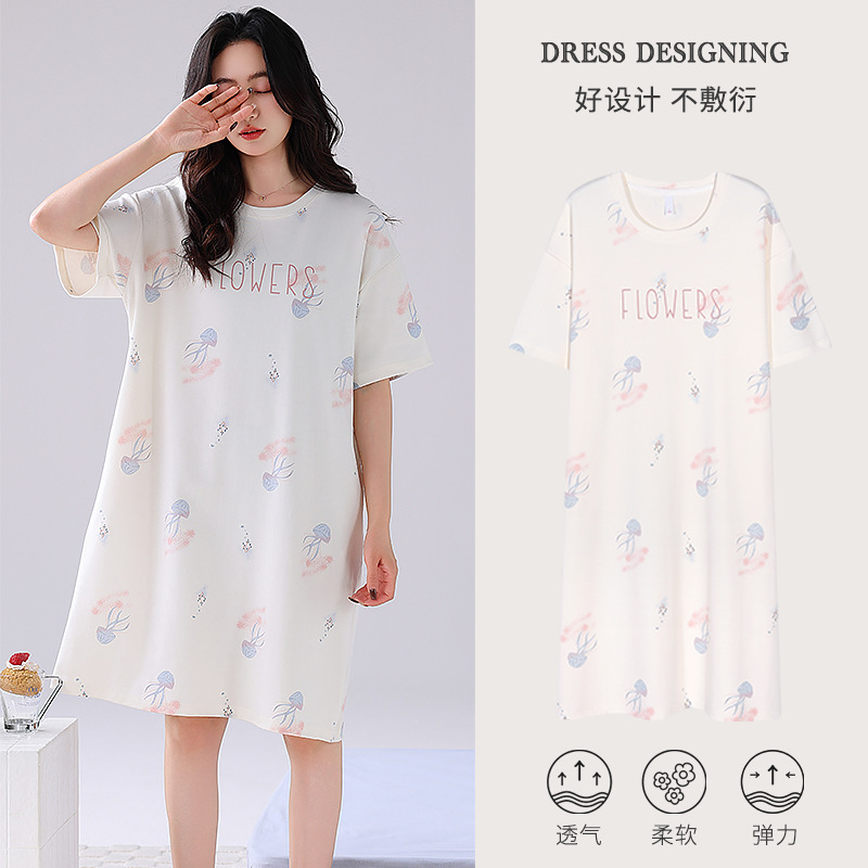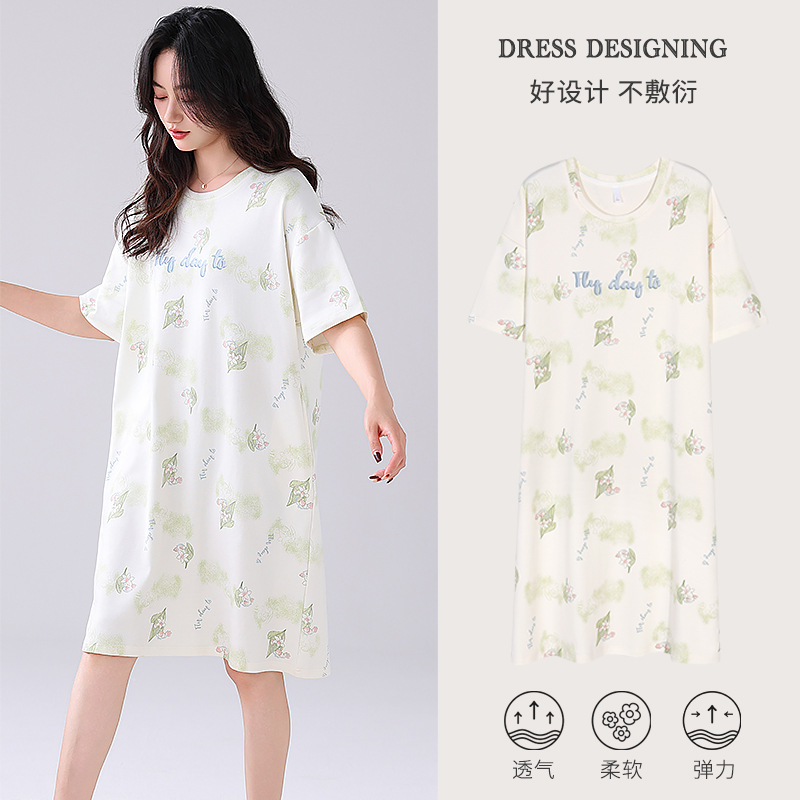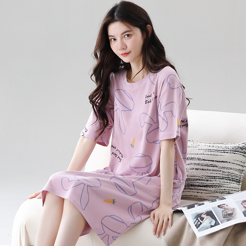 하이 퀄리티 순수한면 잠옷 여성 짧은 소매 여름 얇은 100% 면 긴 플러스 사이즈 여름 순수한 면 잠옷 홈 옷스토어 가기