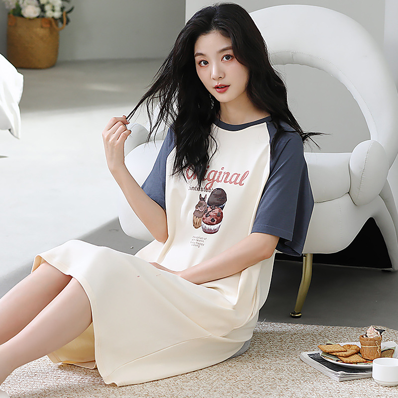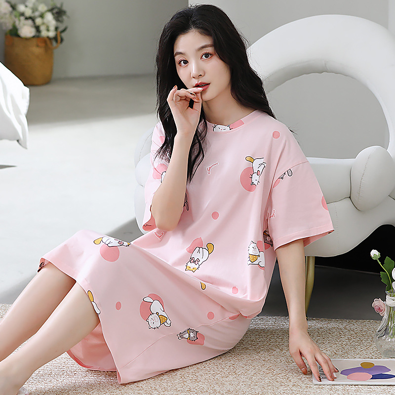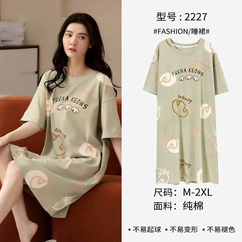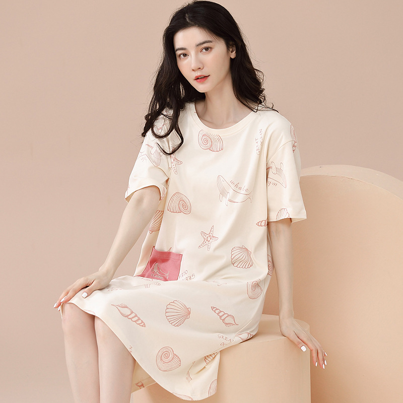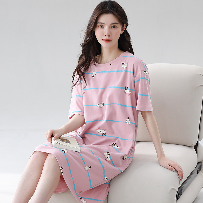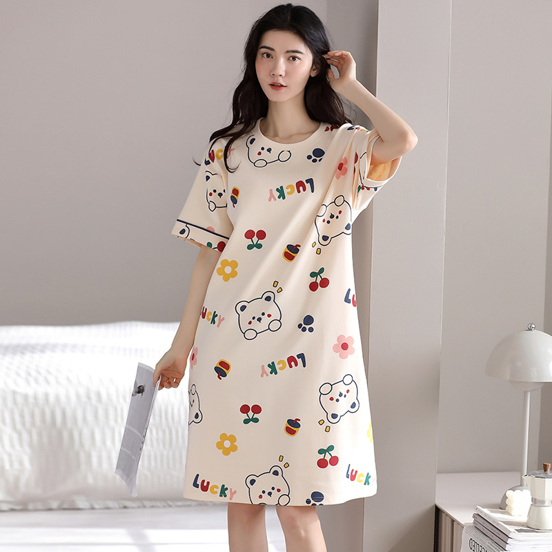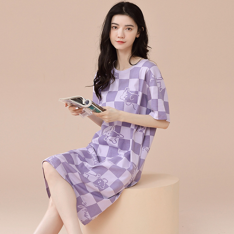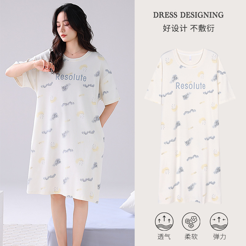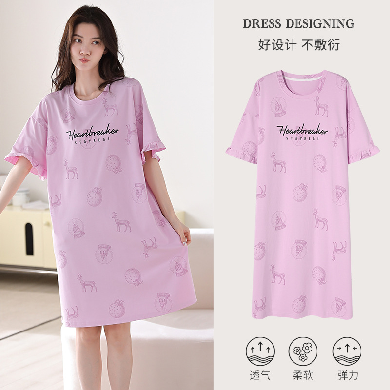 하이 퀄리티 순수한면 잠옷 여성 짧은 소매 여름 얇은 100% 면 긴 플러스 사이즈 여름 순수한 면 잠옷 홈 옷스토어 가기