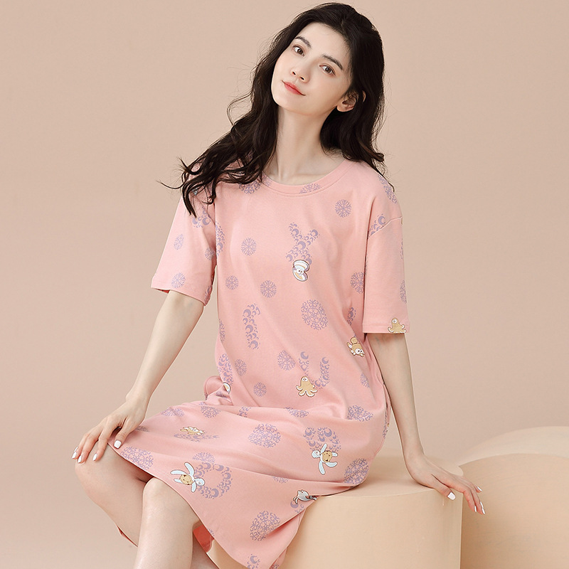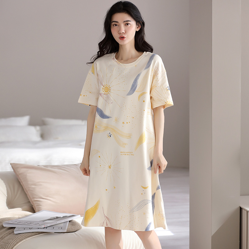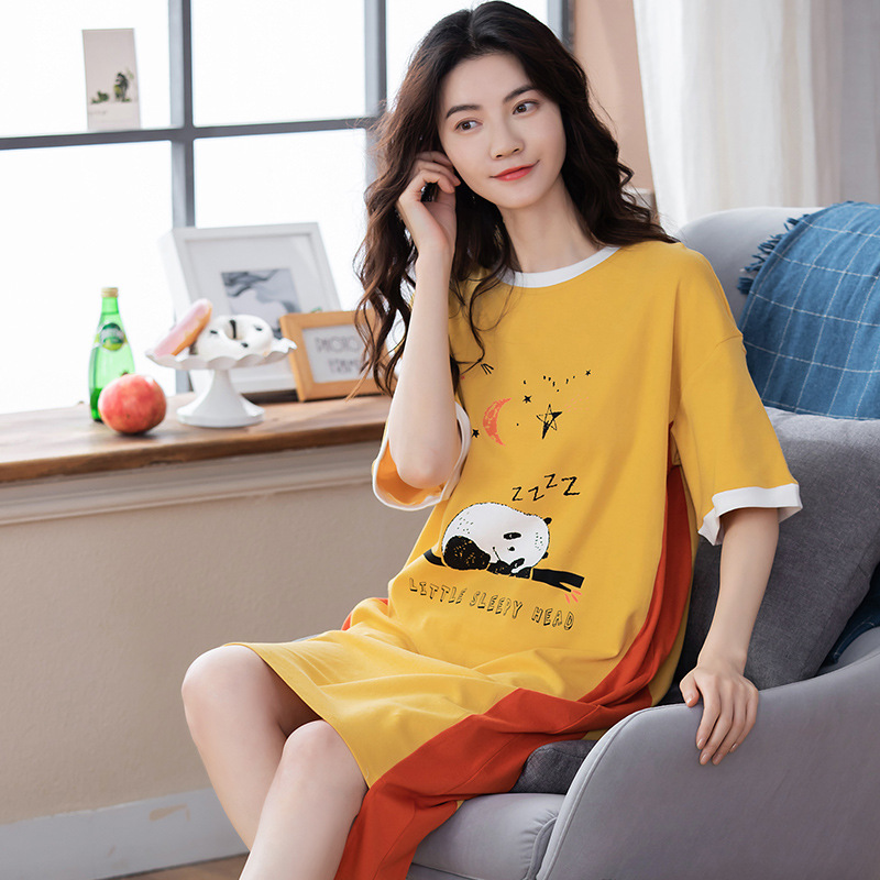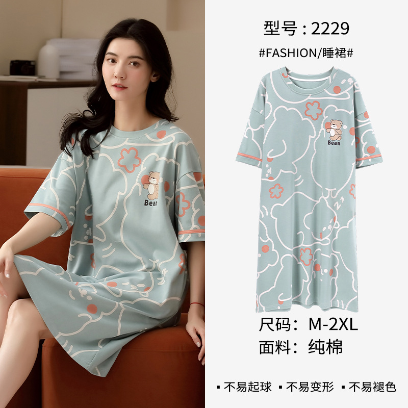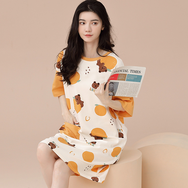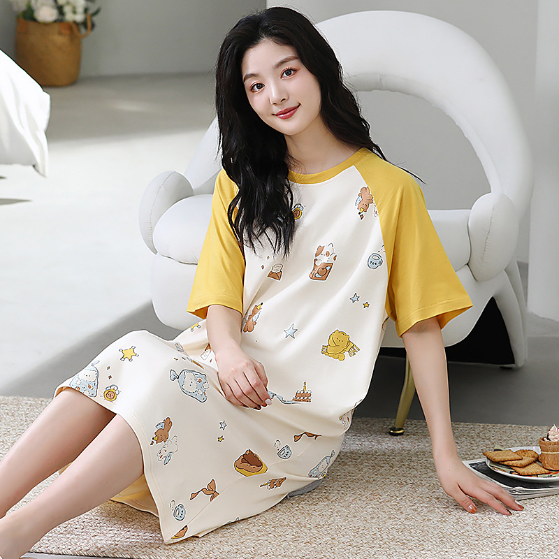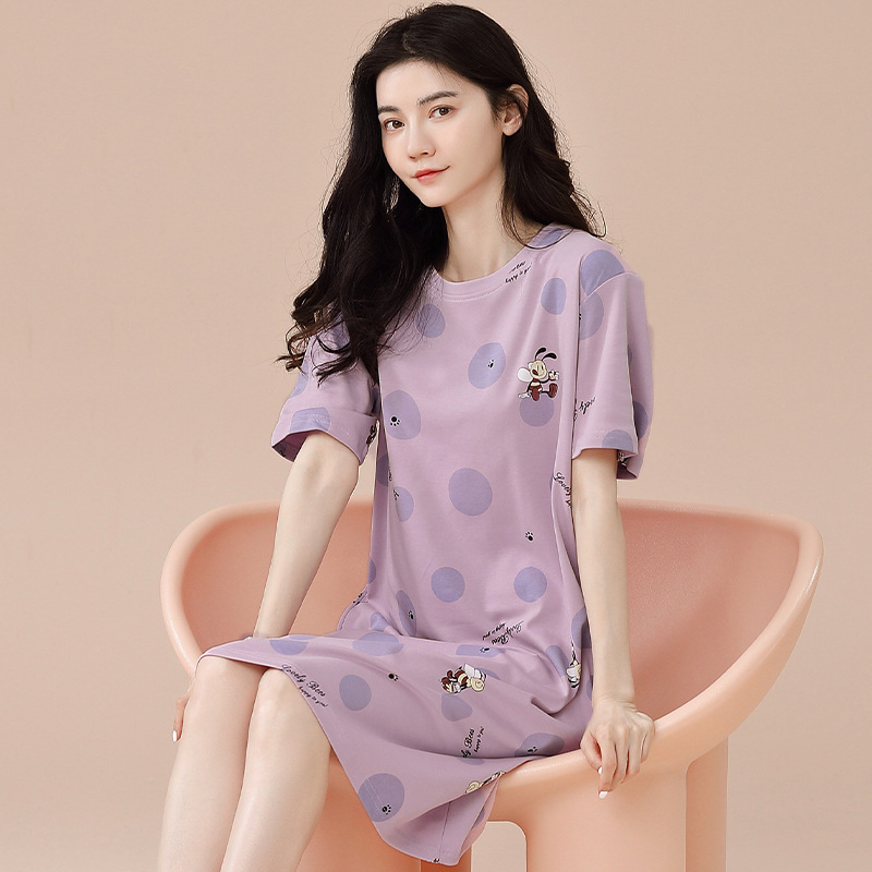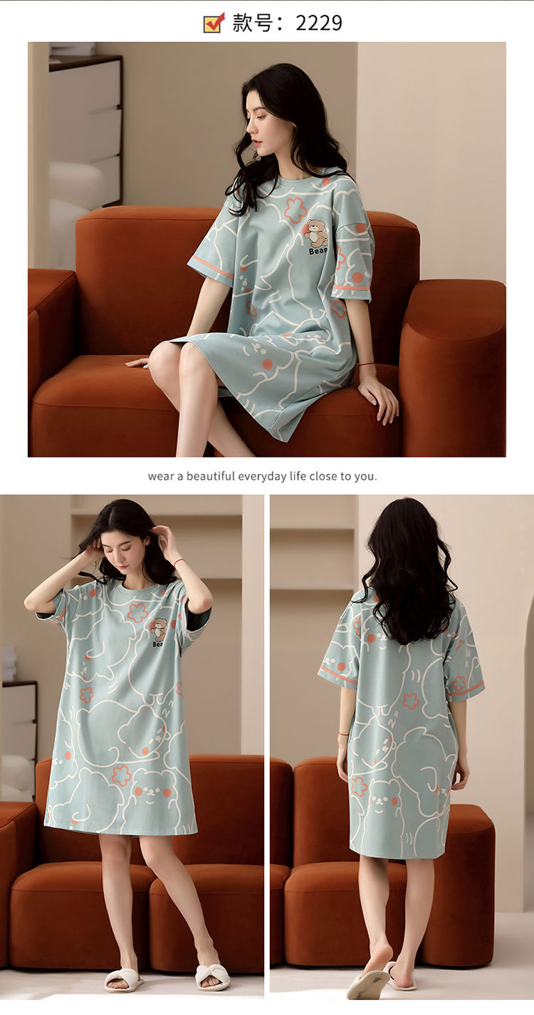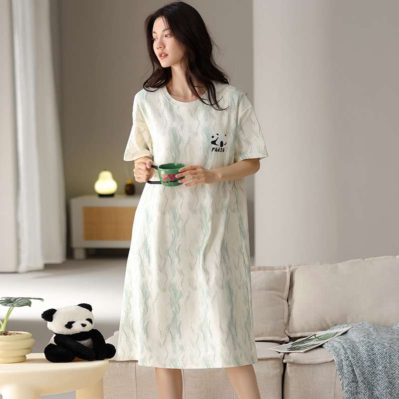 하이 퀄리티 순수한면 잠옷 여성 짧은 소매 여름 얇은 100% 면 긴 플러스 사이즈 여름 순수한 면 잠옷 홈 옷스토어 가기