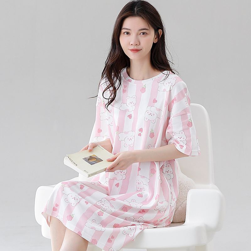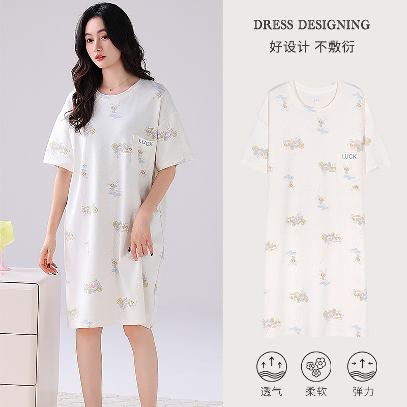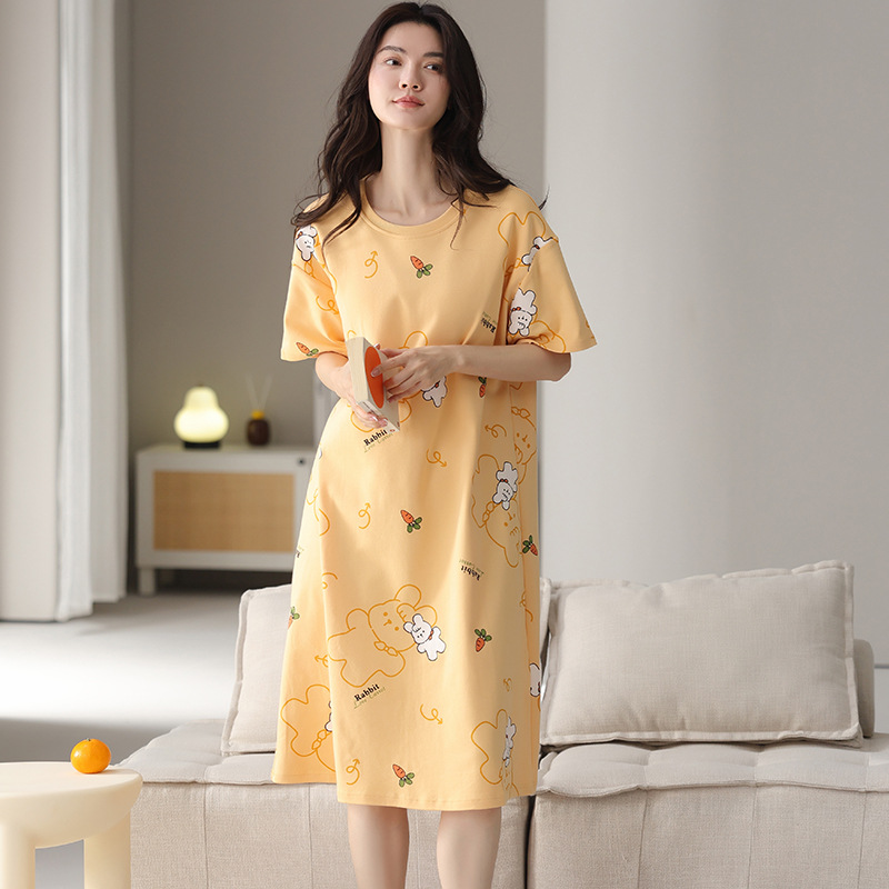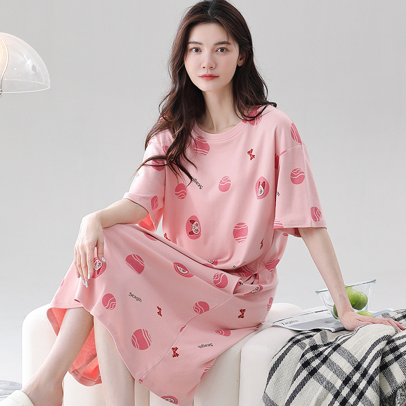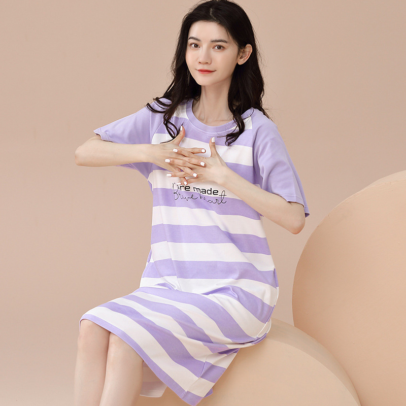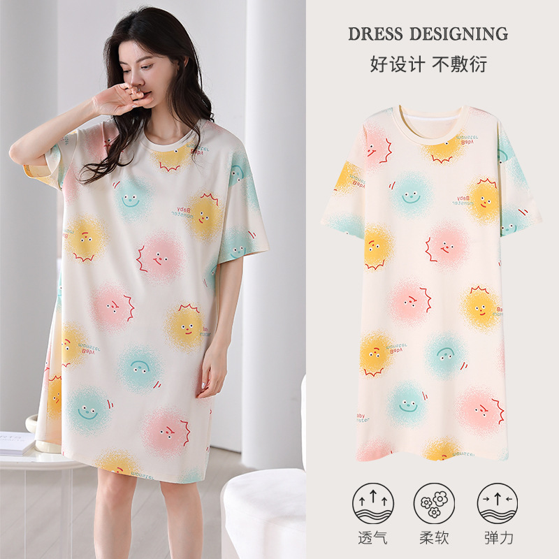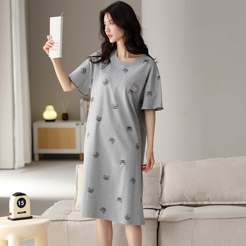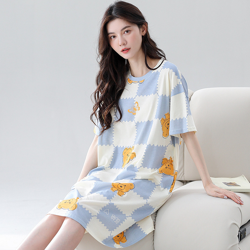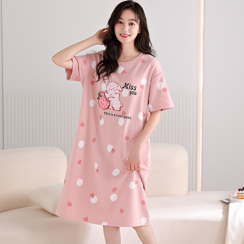 하이 퀄리티 순수한면 잠옷 여성 짧은 소매 여름 얇은 100% 면 긴 플러스 사이즈 여름 순수한 면 잠옷 홈 옷스토어 가기