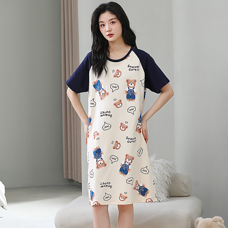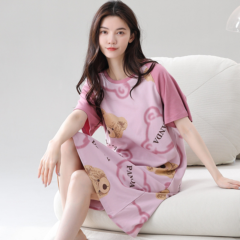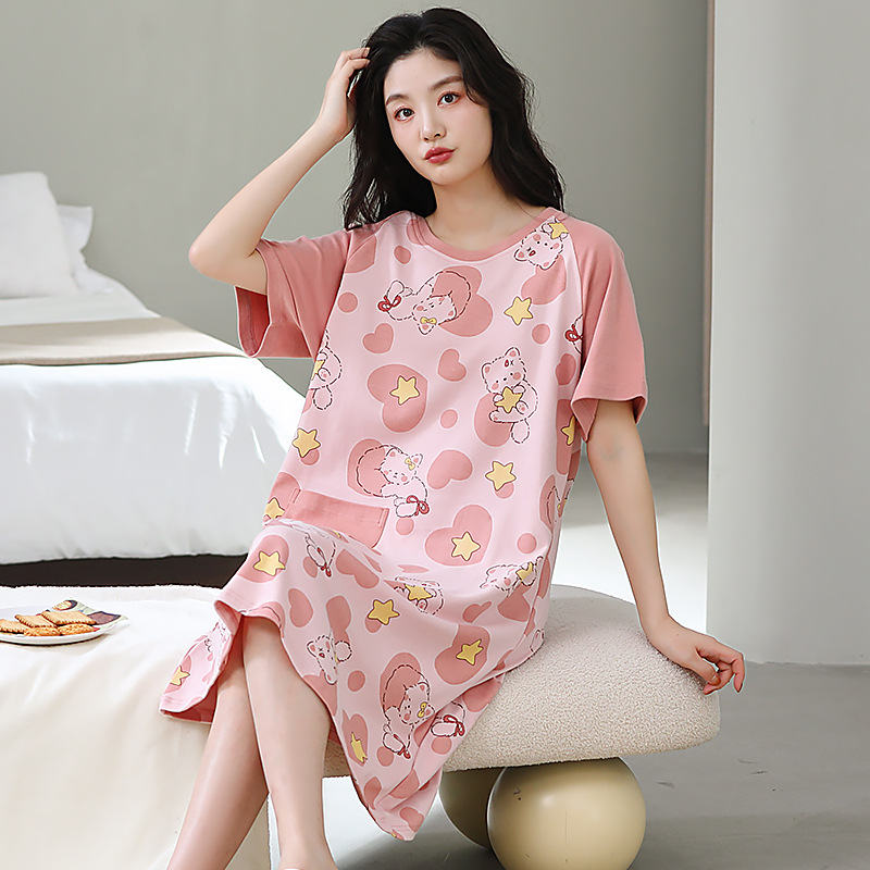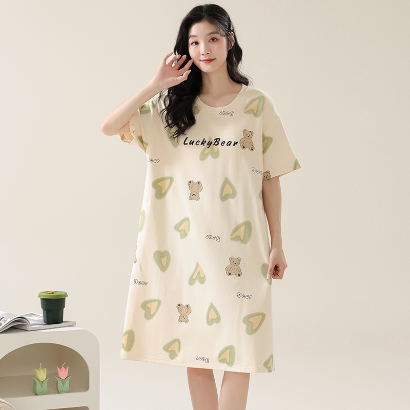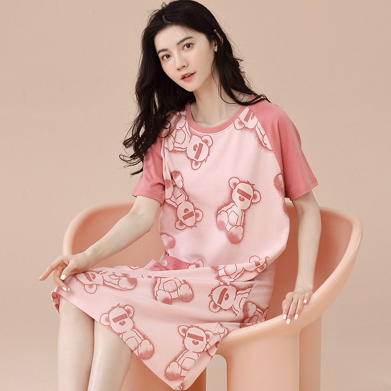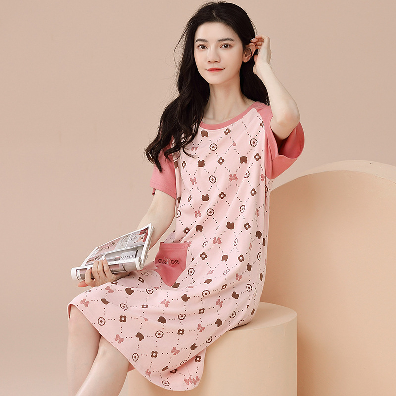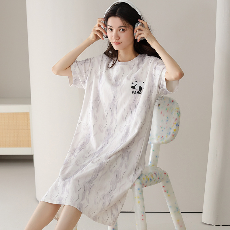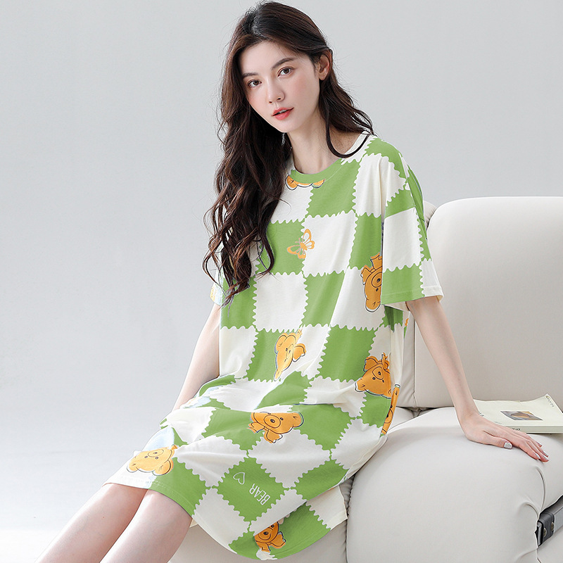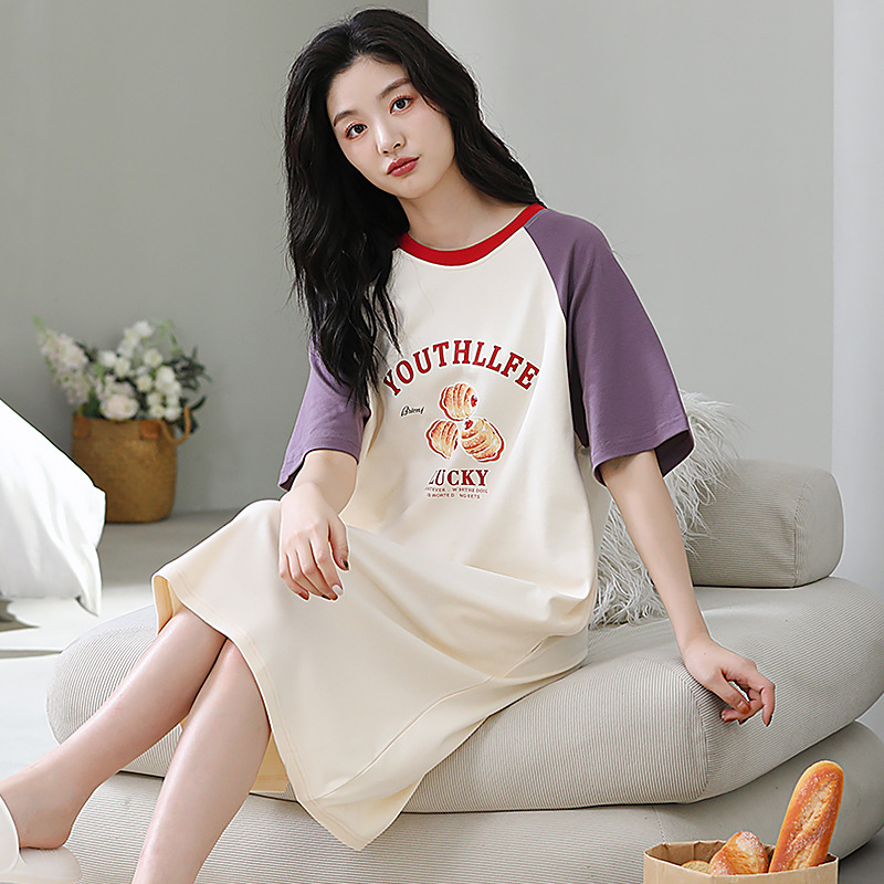 하이 퀄리티 순수한면 잠옷 여성 짧은 소매 여름 얇은 100% 면 긴 플러스 사이즈 여름 순수한 면 잠옷 홈 옷스토어 가기