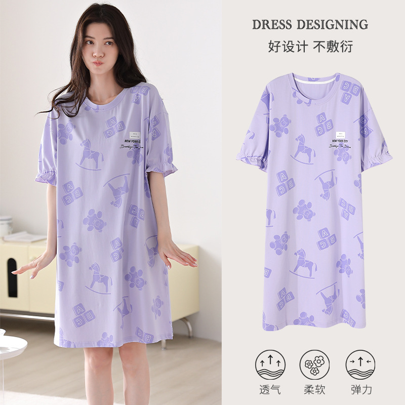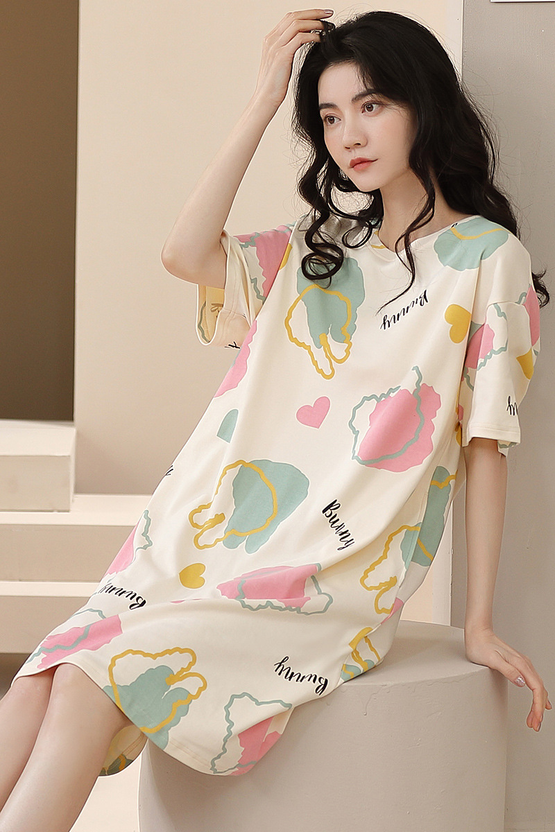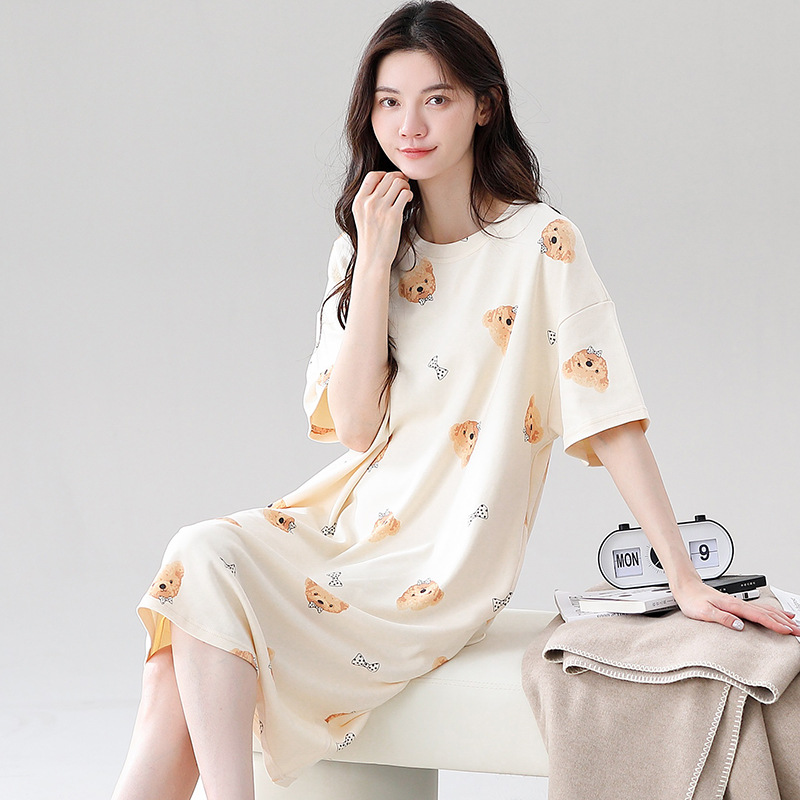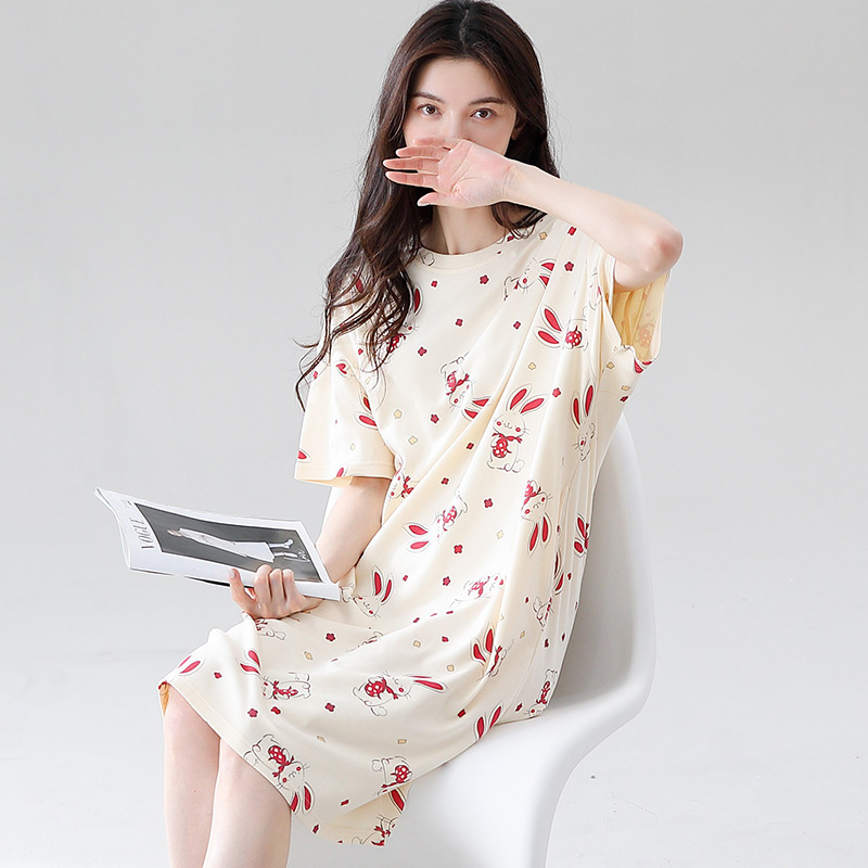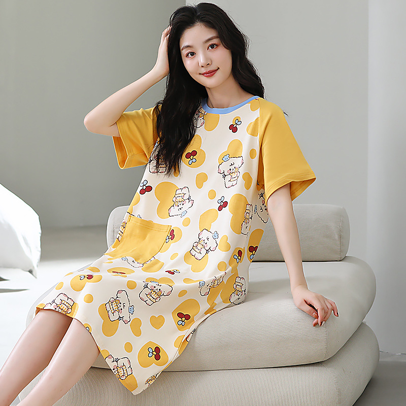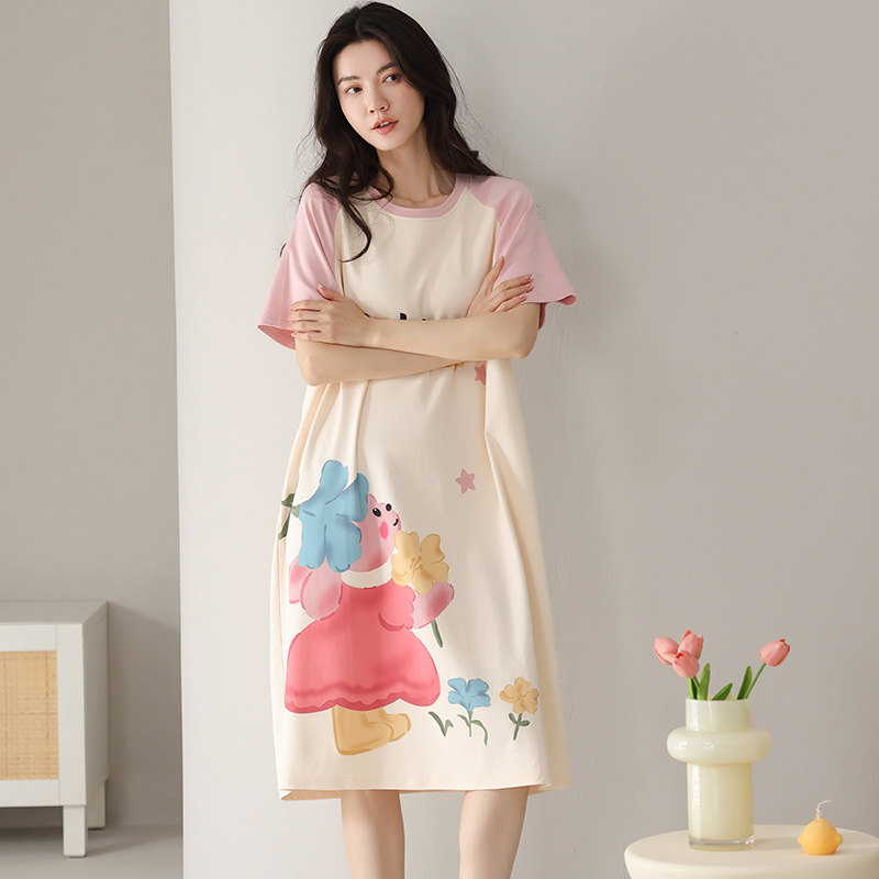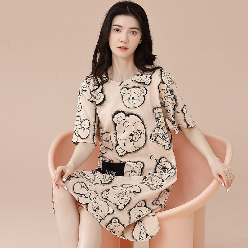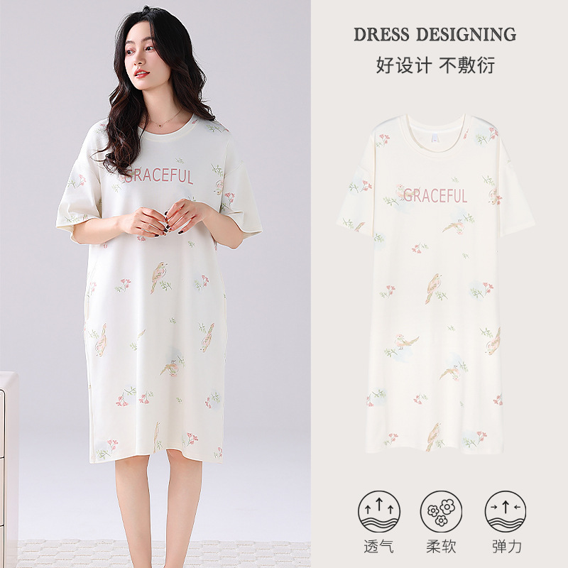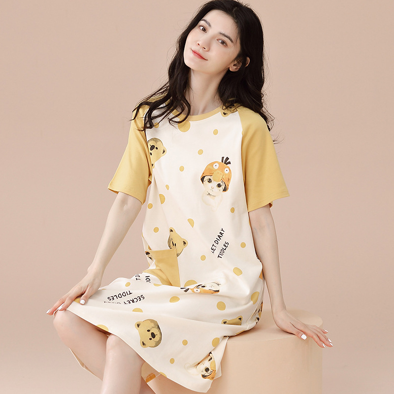 하이 퀄리티 순수한면 잠옷 여성 짧은 소매 여름 얇은 100% 면 긴 플러스 사이즈 여름 순수한 면 잠옷 홈 옷스토어 가기