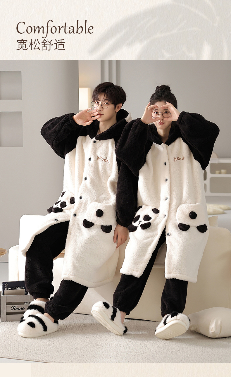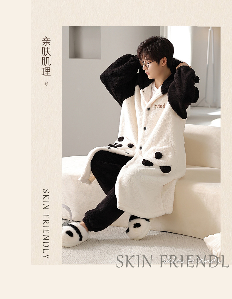 부드러운 커플 잠옷 가을과 겨울 모방 반 양털 도파민 크루 넥 단색 따뜻한 겨울 산호 양털 홈 옷