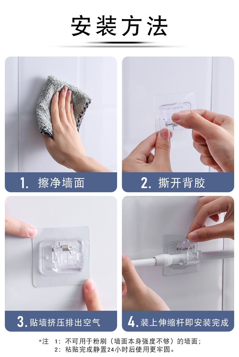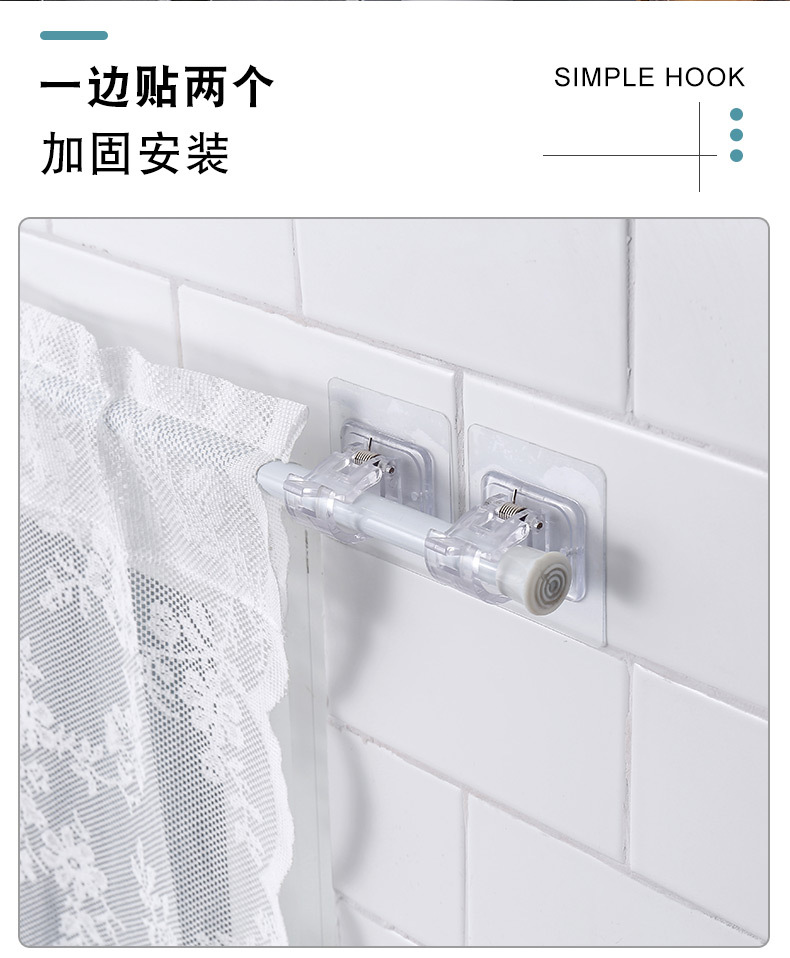 커튼로드 후크 펀치없는 커튼 걸이 랙 가정용 벽 접착 브래킷 클립 도어 커튼 텔레스코픽로드 후크