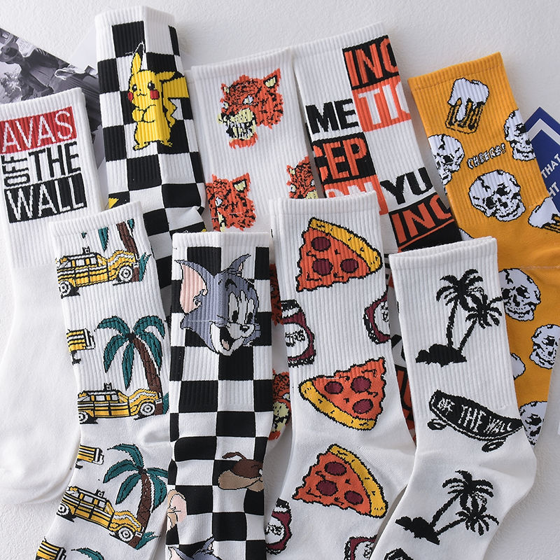 크로스 보더 핫 셀링 미드 튜브 양말 유럽과 미국 스타일 재미있는 면 양말 만화 애니메이션 테마 미드 튜브 양말 남성 캐주얼 스타킹