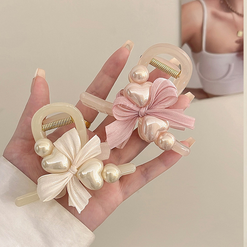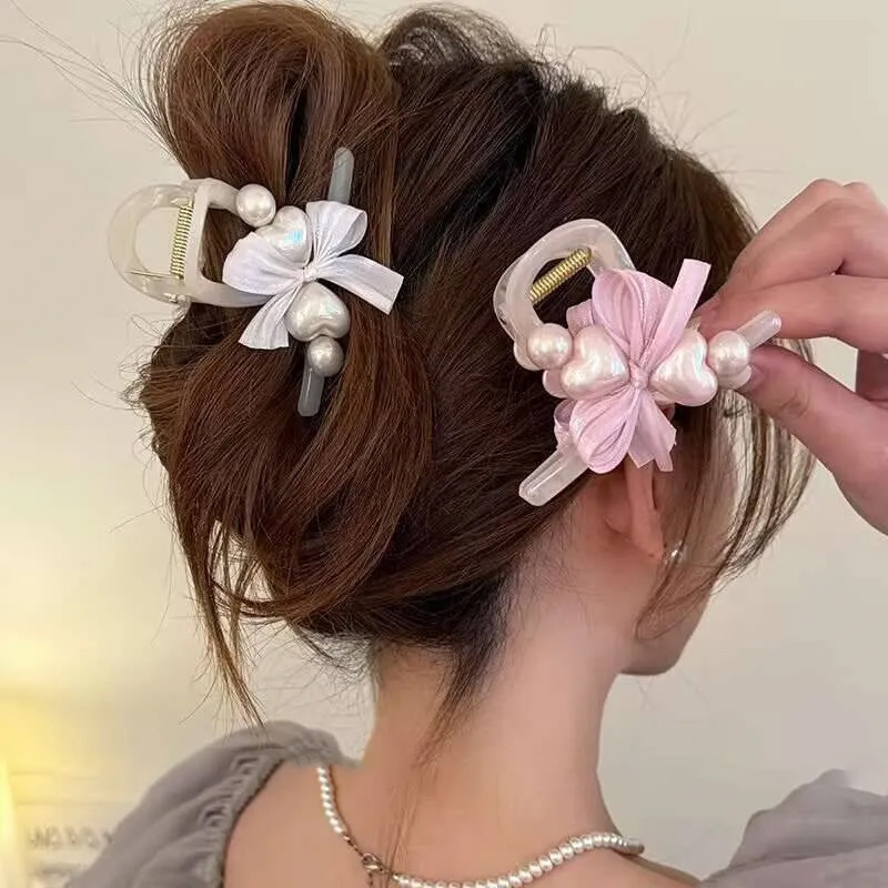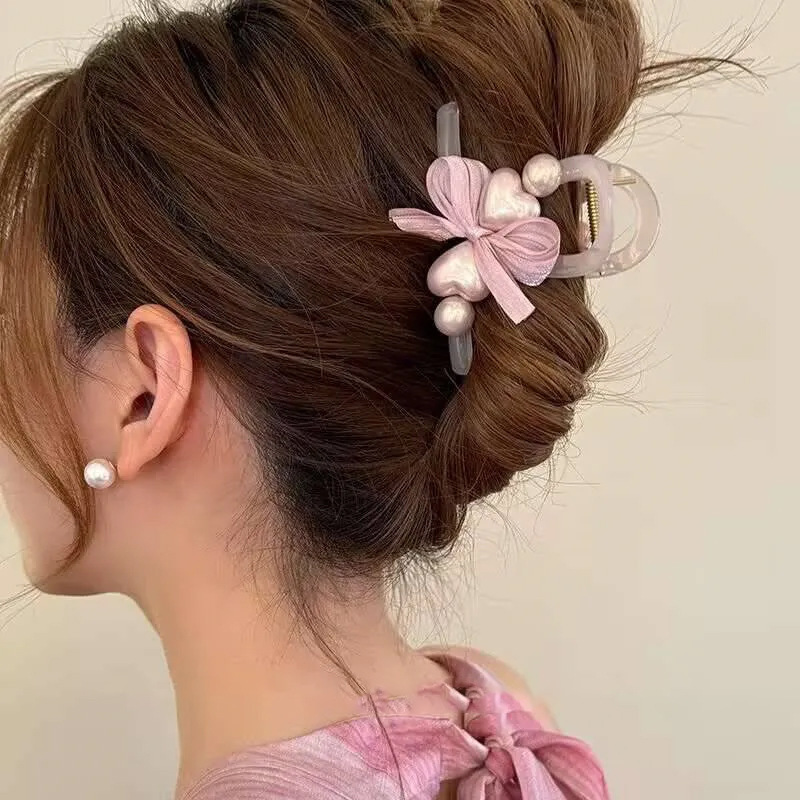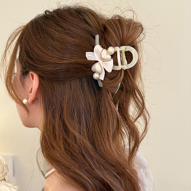 밀크 커피 젖빛 그립 클립 여자의 우아한 머리핀 접시 머리 뒤 머리 상어 클립 부드러운 꽃 머리핀 기질 도매