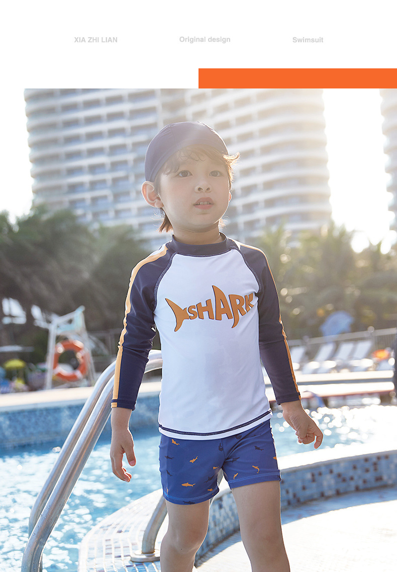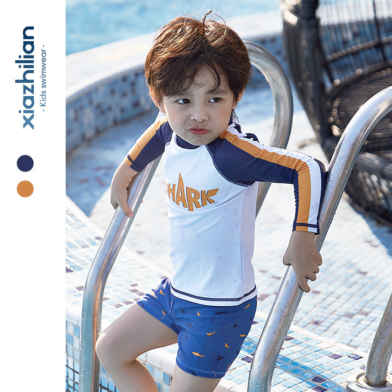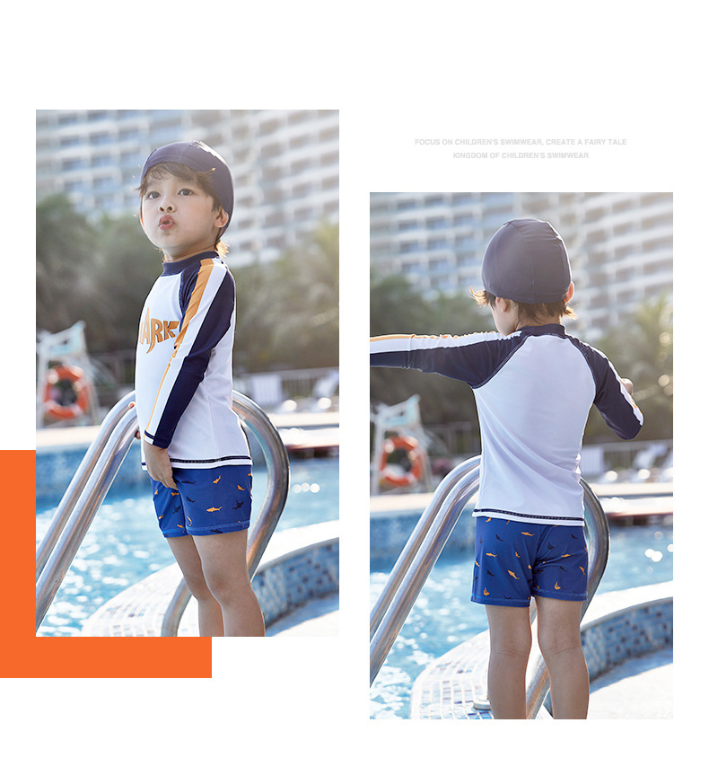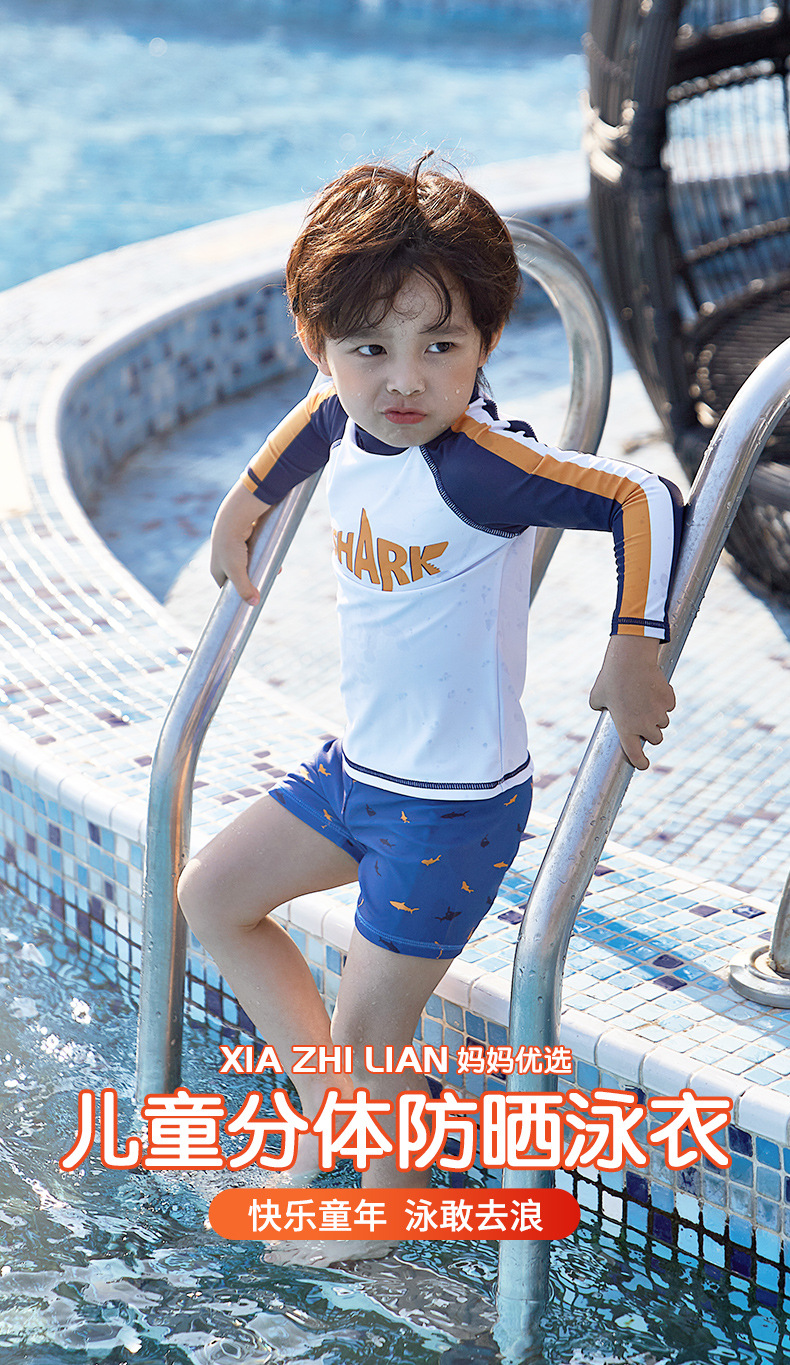 韩国儿童泳衣男童分体长袖防晒中大童男孩宝宝小童冲浪游泳衣速干