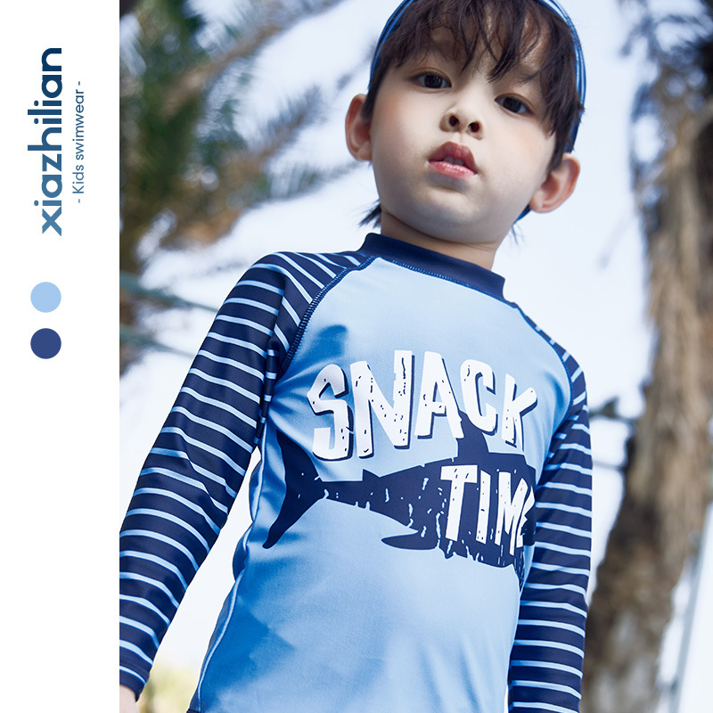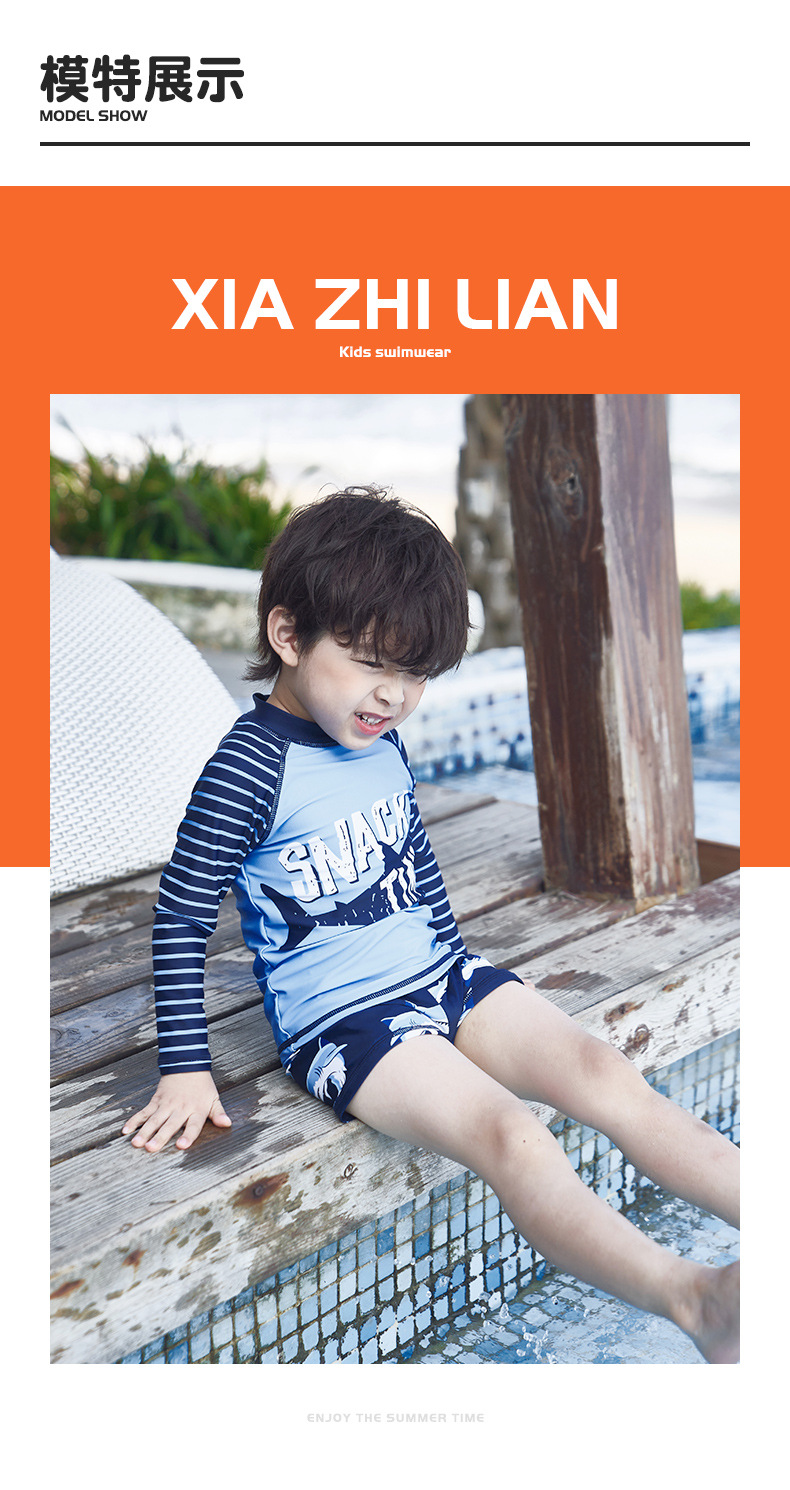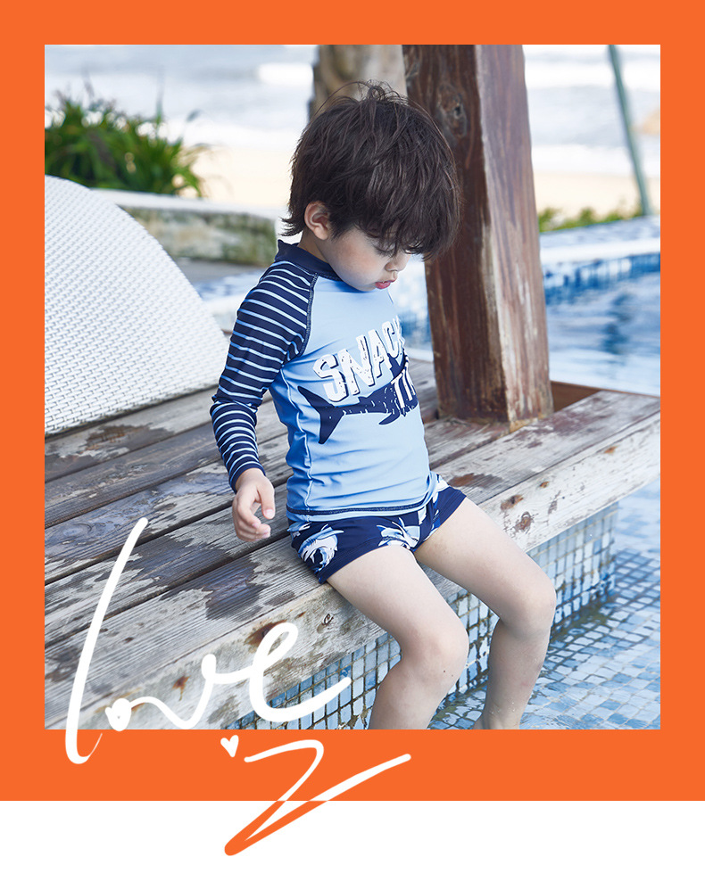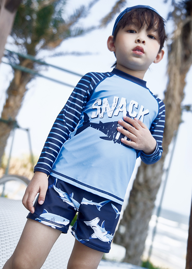 韩国儿童长袖沙滩泳衣裤套装男童宝宝防晒小中大童分体套装冲浪服