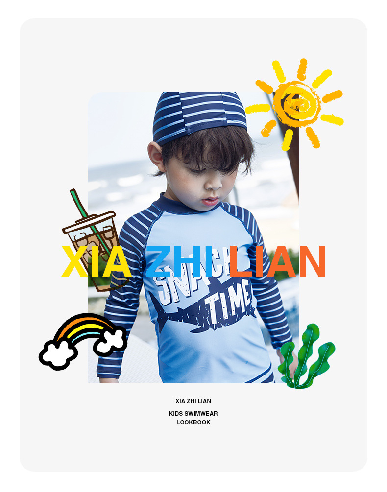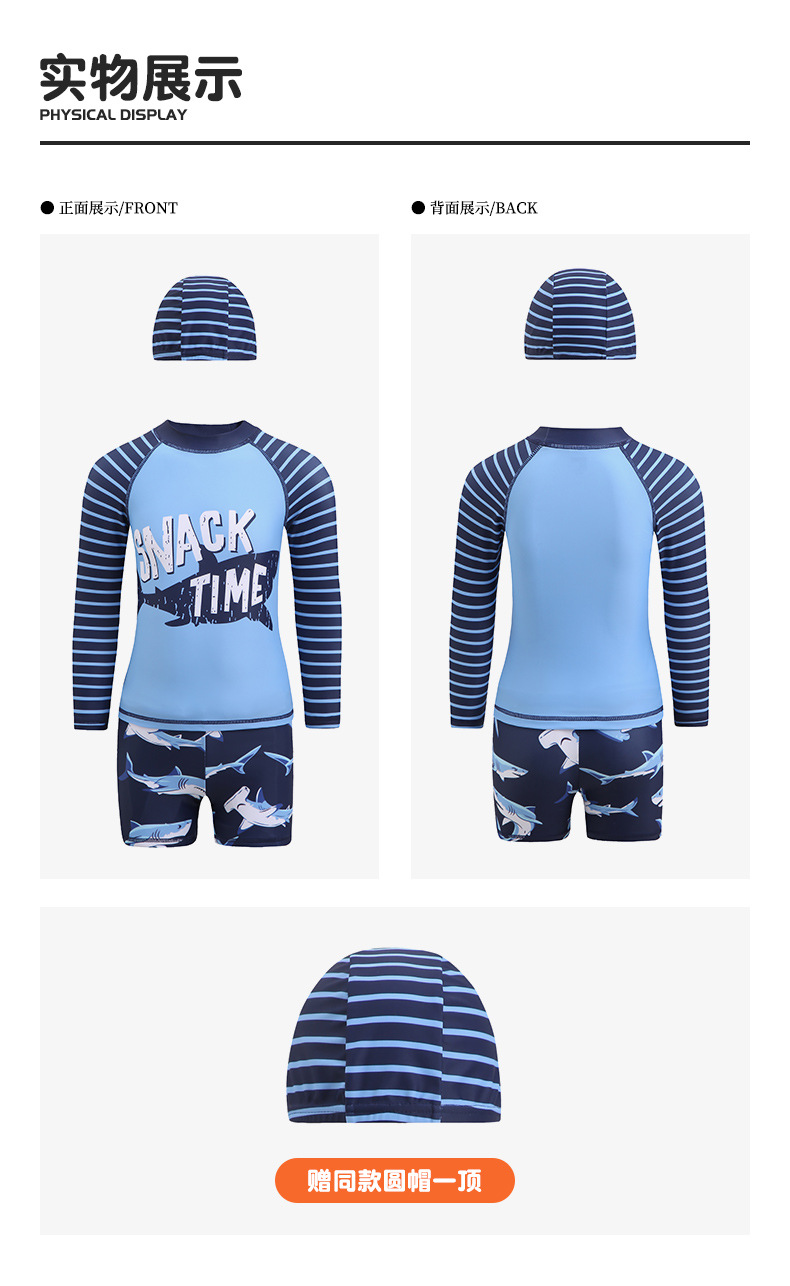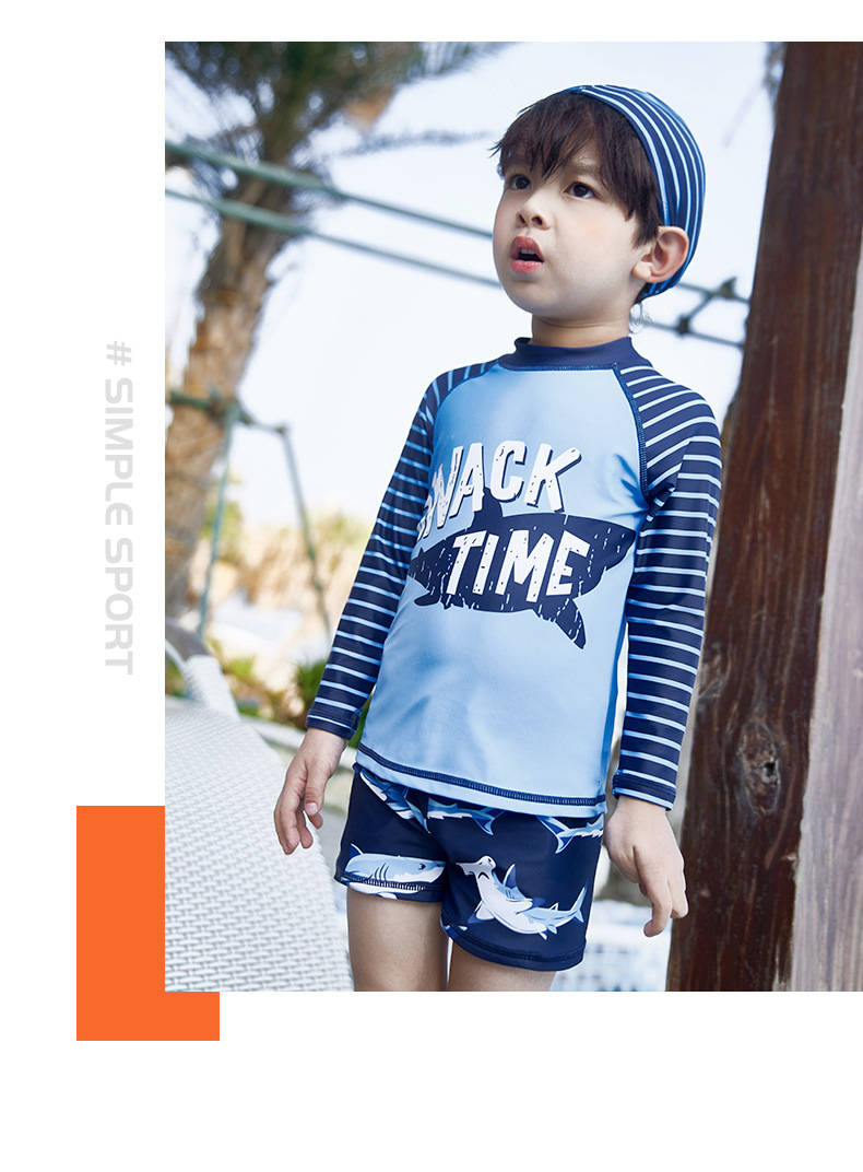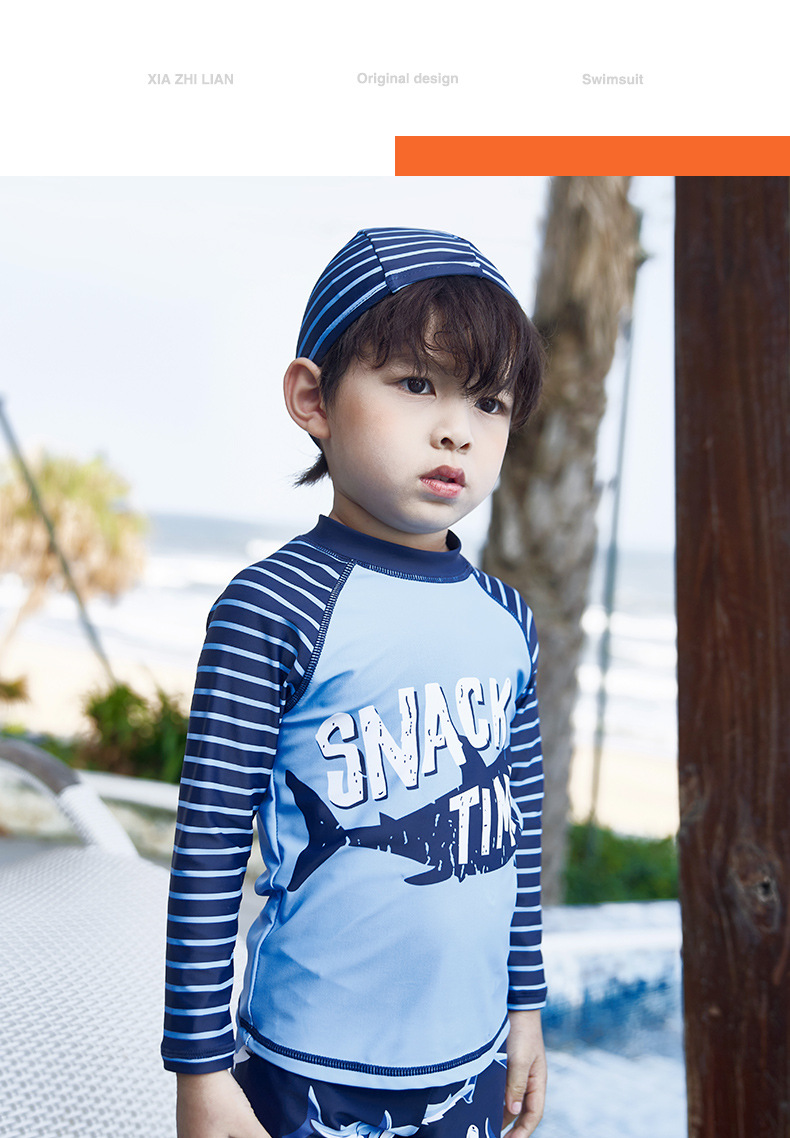 韩国儿童长袖沙滩泳衣裤套装男童宝宝防晒小中大童分体套装冲浪服