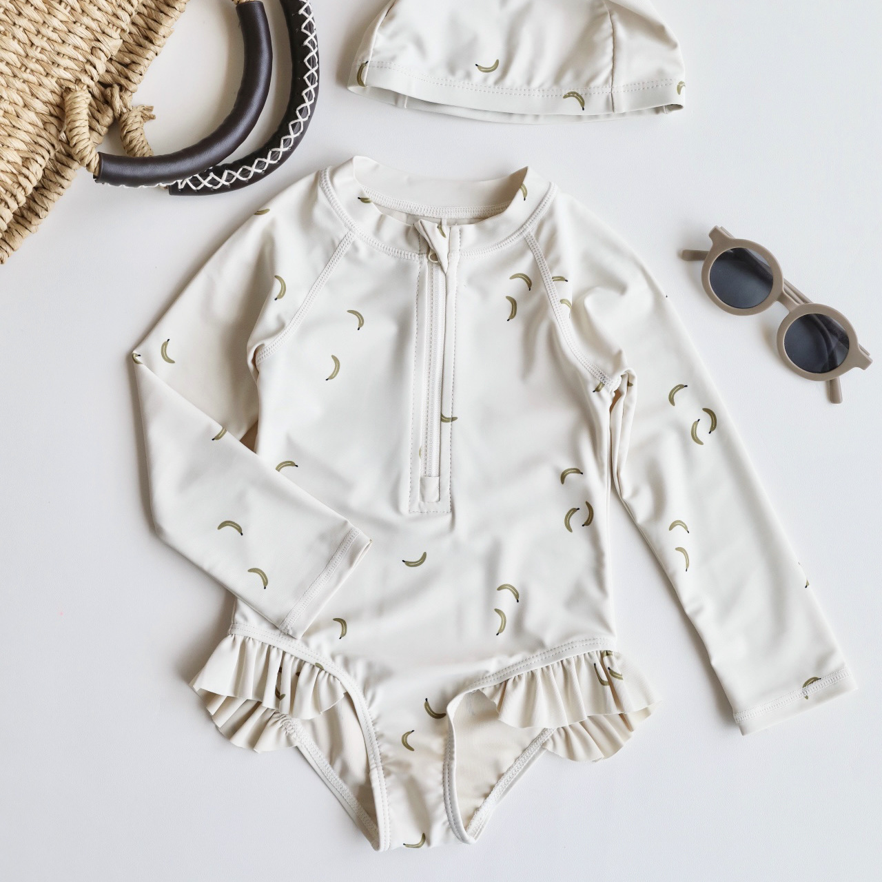 소녀 아기 귀여운 원피스 수영복 소녀 Ins 스타일 꽃 수영복 어린이 긴 소매 안티 염소 선 스크린 수영복