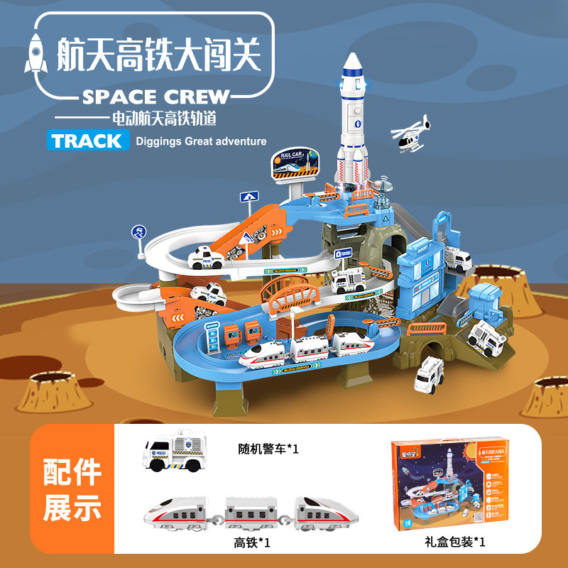 큰 모험을 돌파하는 어린이 공학 철도 자동차 전기 슬라이드 자동차 세트 소년 교육 장난감 도매 돌파스토어 가기
