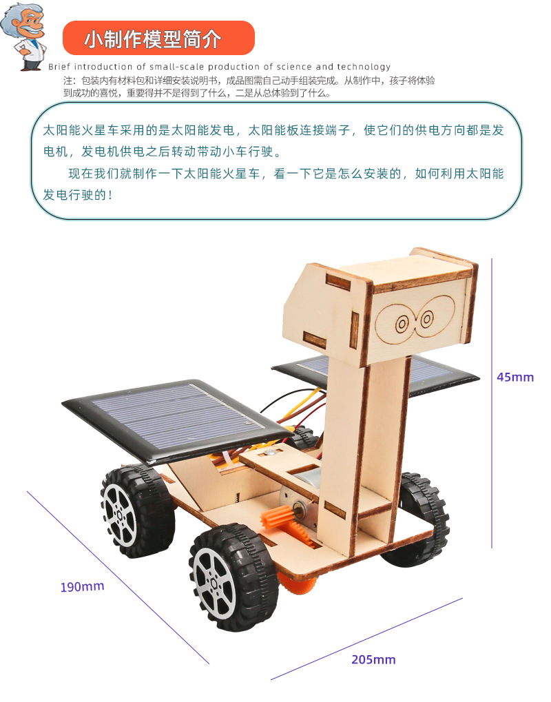 어린이 과학 기술 DIY 수제 작은 달 탐침 자동차 태양 전지 장난감 자동차 물리학 과학 실험 도매스토어 가기
