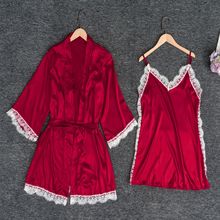 잠옷 여자의 여름 얼음 실크 섹시한 뜨거운 가정 옷 봄과 가을 긴 소매 얇은 플러스 사이즈 크로스 국경 5 피스 세트 목욕 가운