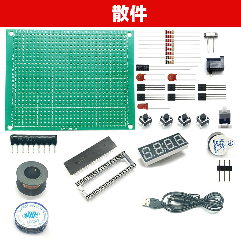 51 싱글 칩 마이크로 컴퓨터 온도 경보 키트 전자 온도계 개발 보드 설계 실습 DIY 부품 기반스토어 가기