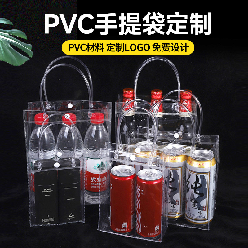 PVC 와인 휴대용 아이스 와인 가방 두꺼운 투명 플라스틱 와인 포장 휴대용 가방 맞춤형 와인 가방스토어 가기