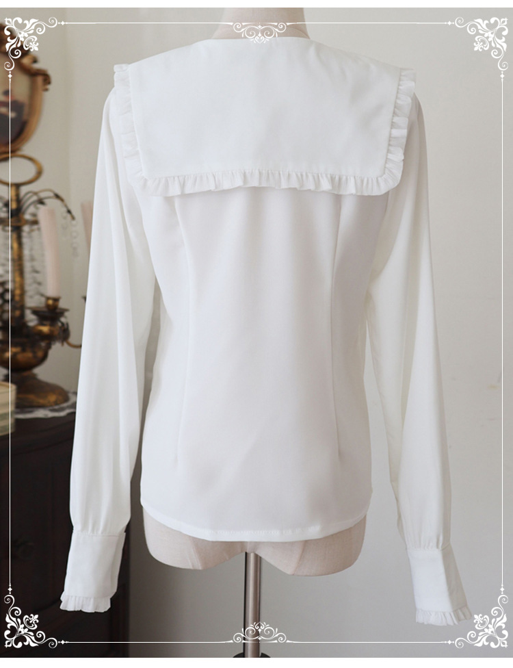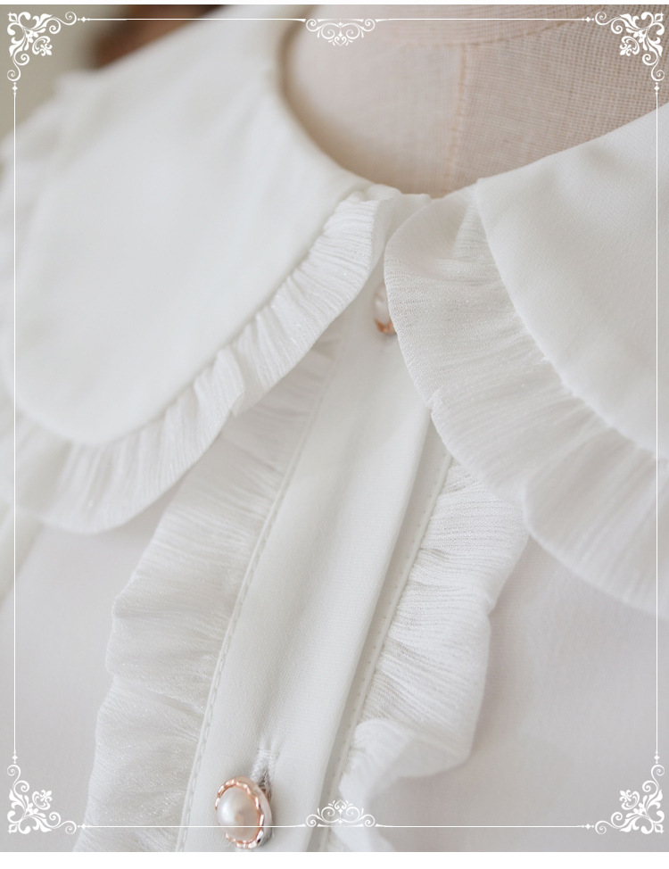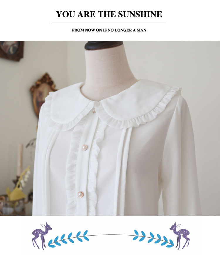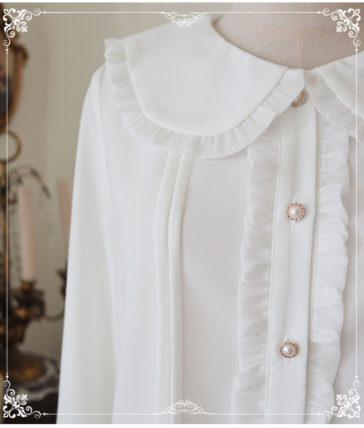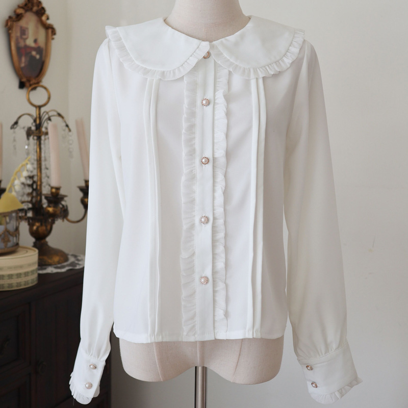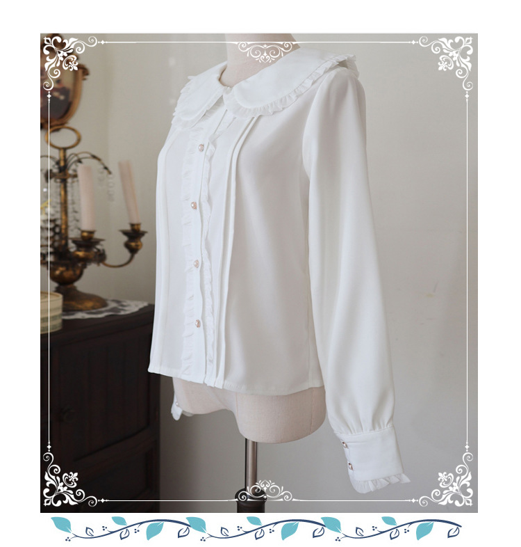 Eiyeyomi 오리지널 로리타 로리타 인형 칼라 모든 경기 양고기 다리 소매 귀여운 우아한 스타일 쉬폰 셔츠