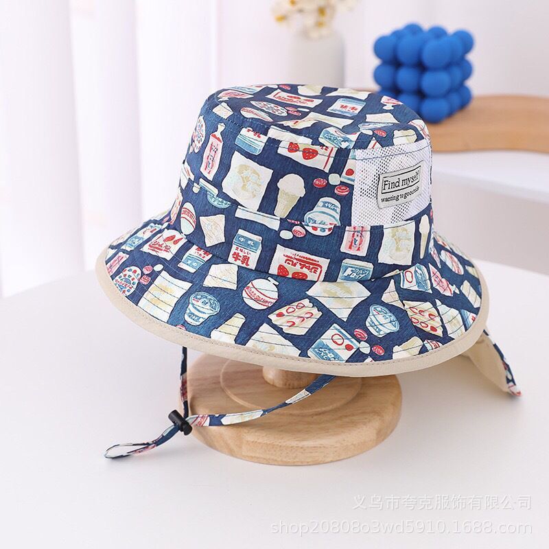 새로운 어린이 아기 목도리 모자 여름 선 스크린 캡 스플래시 방지 패브릭 어린이 목 어부 모자