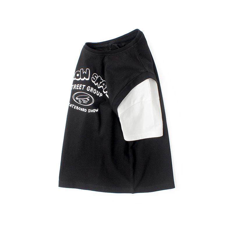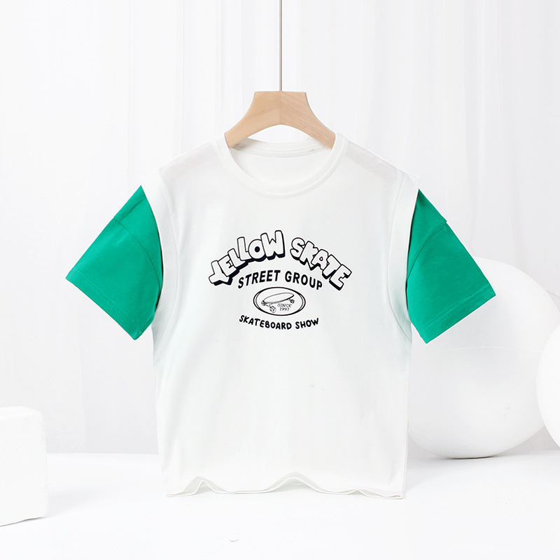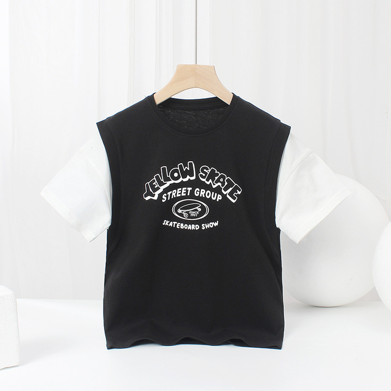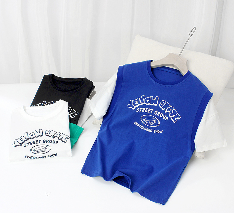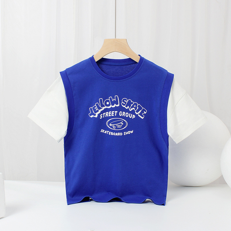 아동복 여름 한국식 새로운 어린이 통기성 반팔 중대형 어린이 가짜 투피스 농구 탑 남아 티셔츠 대체 모발용스토어 가기