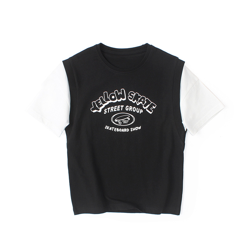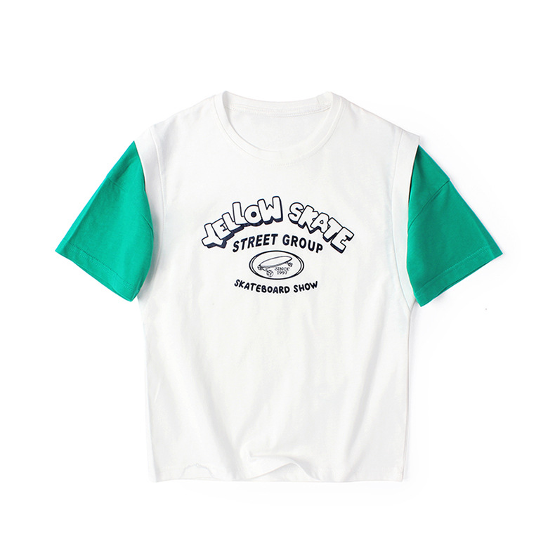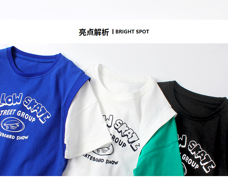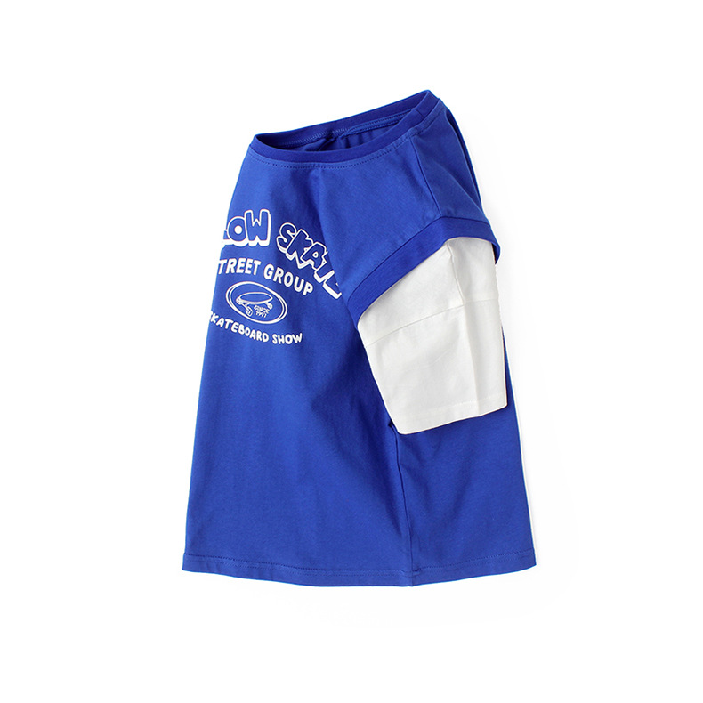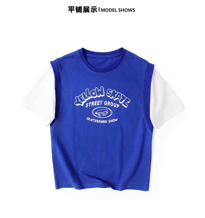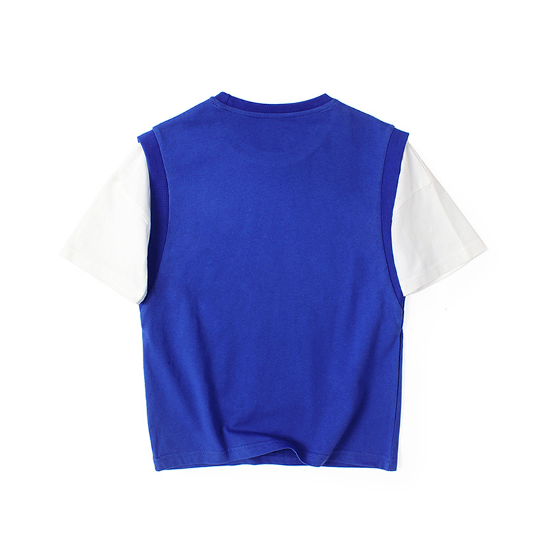 아동복 여름 한국식 새로운 어린이 통기성 반팔 중대형 어린이 가짜 투피스 농구 탑 남아 티셔츠 대체 모발용스토어 가기