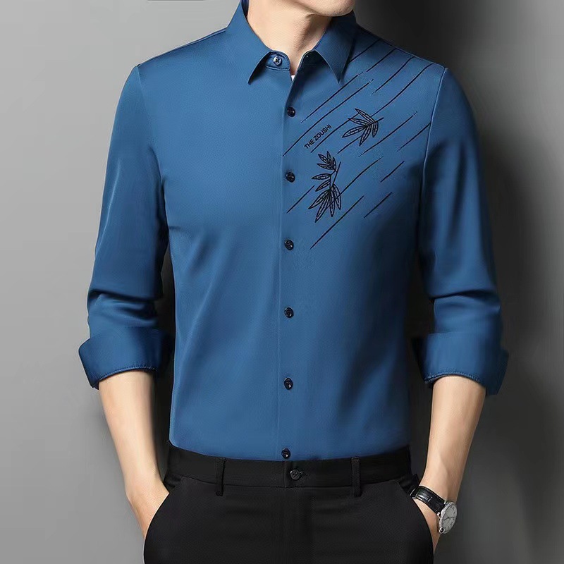 봄 신상 남성용 긴 소매 원활한 비즈니스 셔츠 패션 캐주얼 셔츠 주름 없는 다림질 고탄력 헤어 생성스토어 가기