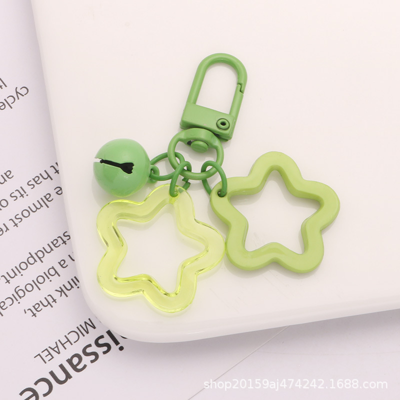 새로운 색상 아크릴 중공 5 각형 키 체인 펜던트 귀여운 페인트 벨 액세서리 이어폰 커버 장식스토어 가기