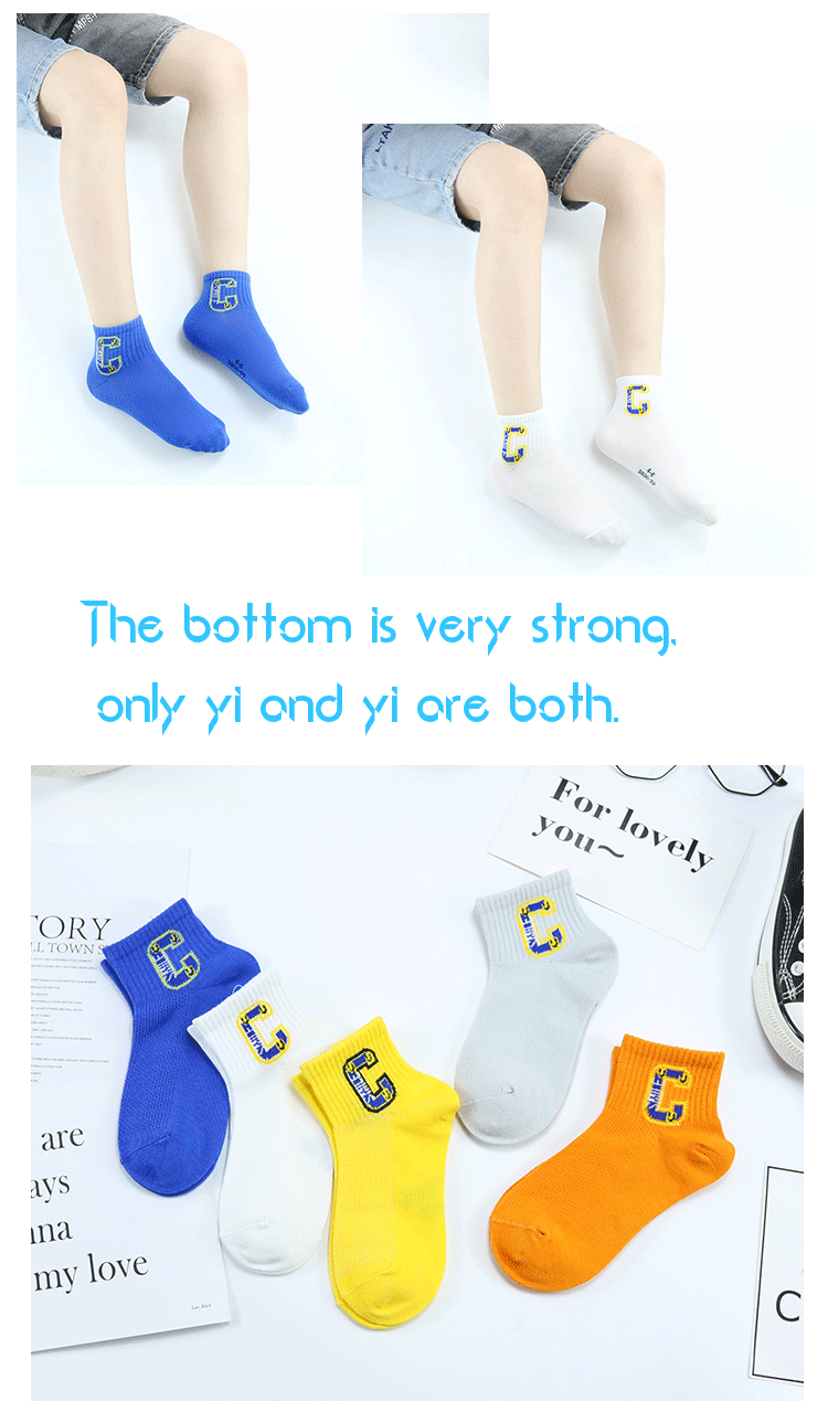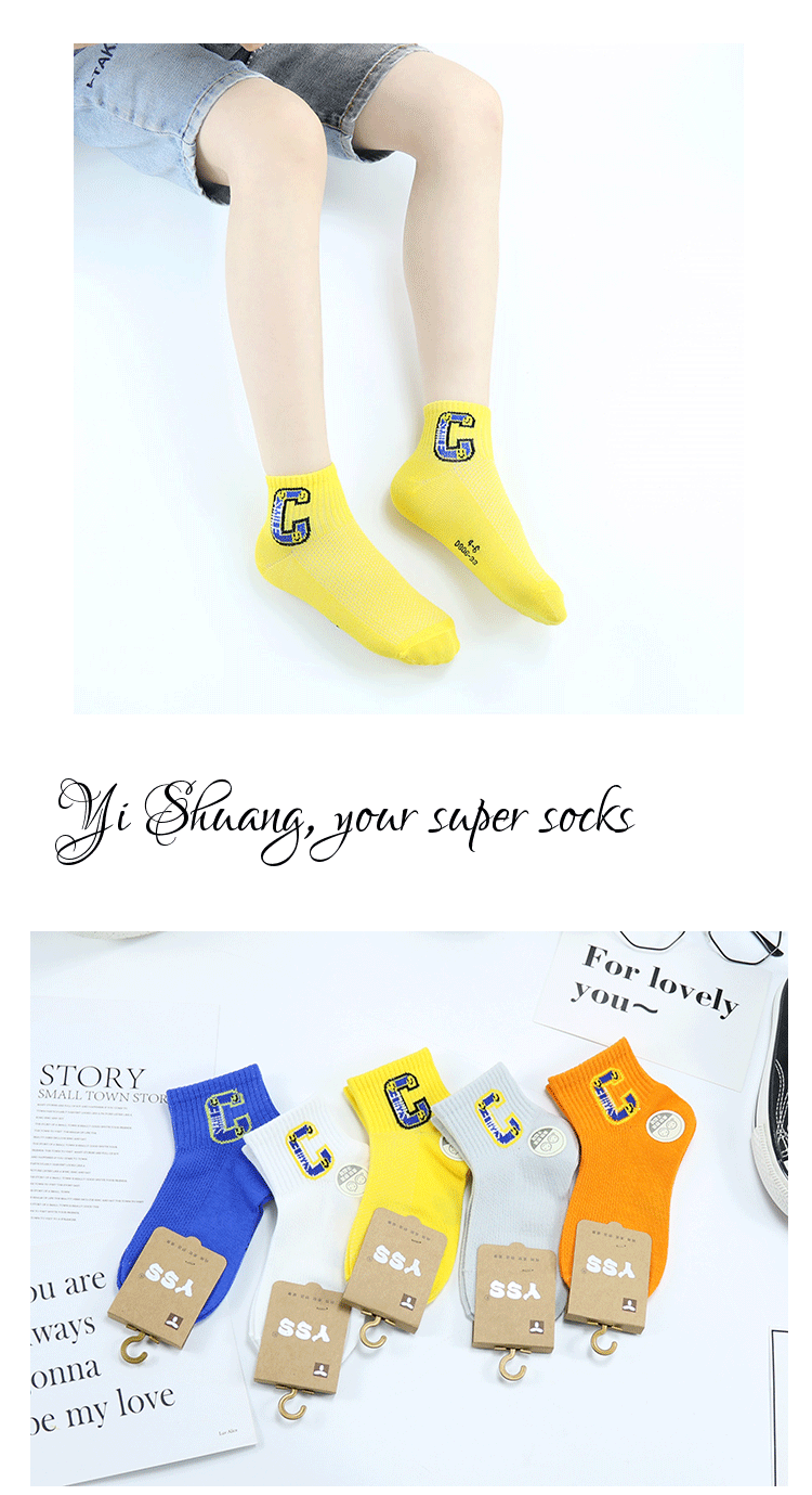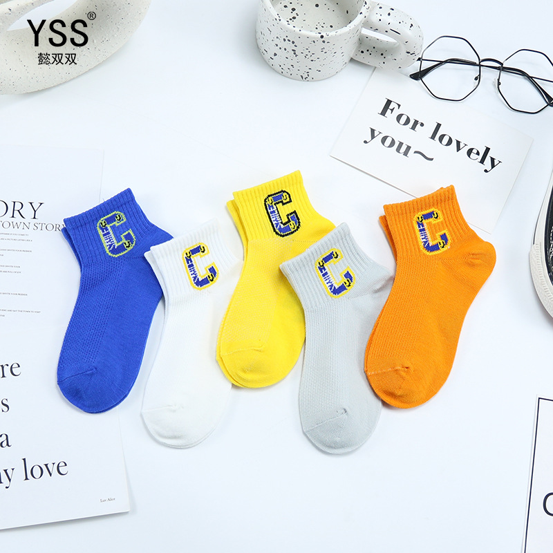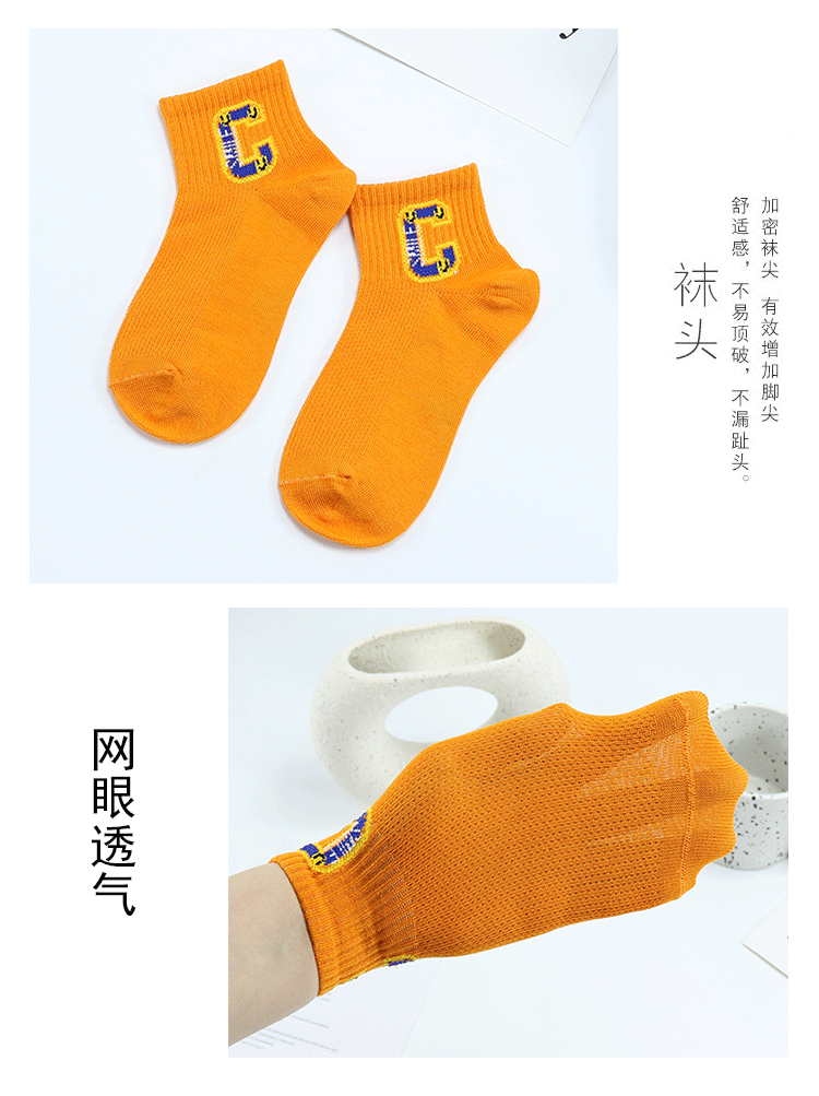 이순신 쌍 어린이 양말 봄과 여름 새로운 메쉬 얇은 한국 스타일 대형 C 편지 짧은 양말 빗질 면 유행 스포츠 양말