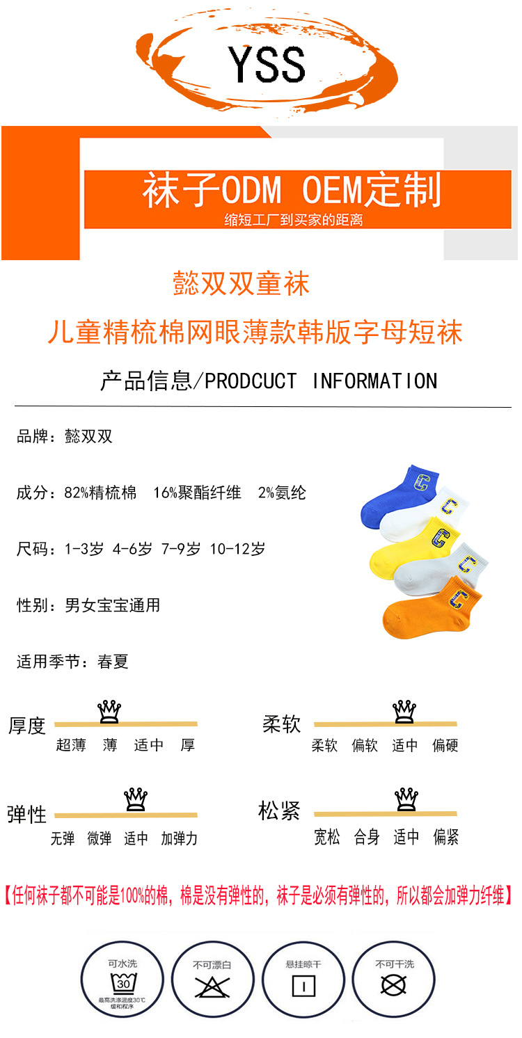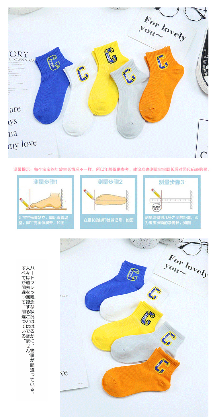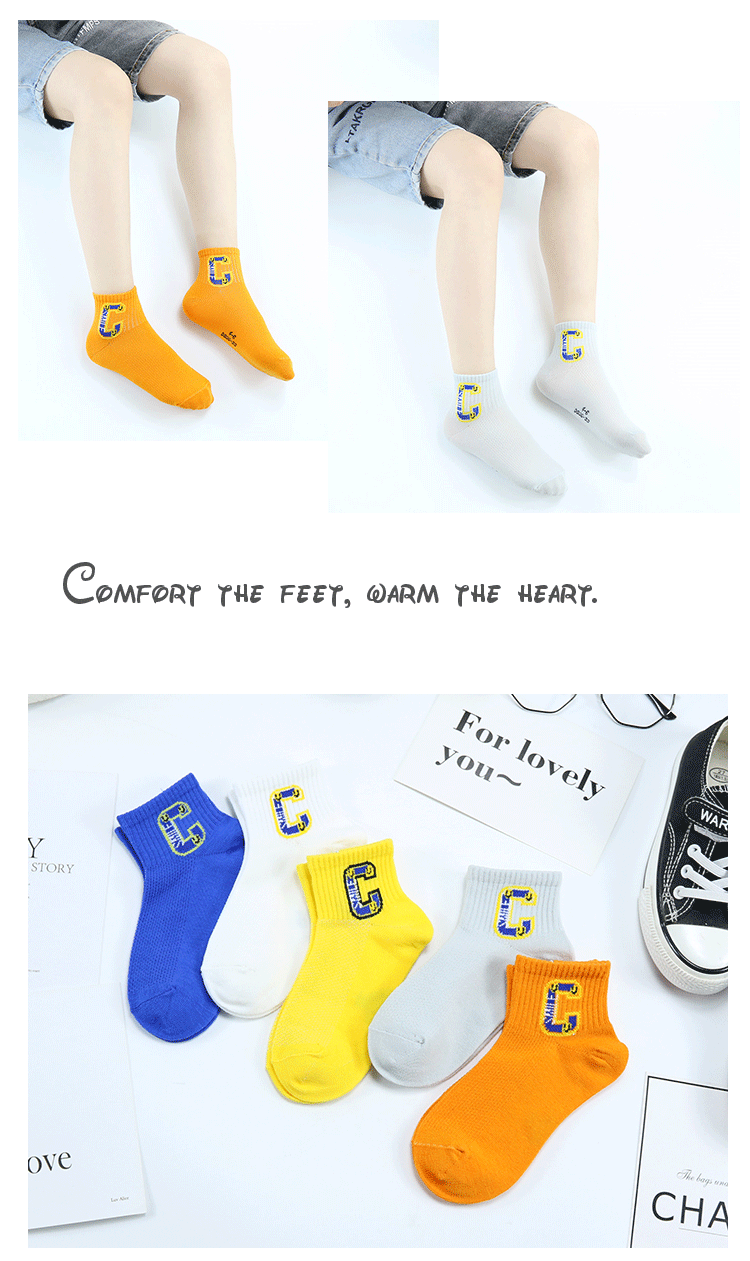 이순신 쌍 어린이 양말 봄과 여름 새로운 메쉬 얇은 한국 스타일 대형 C 편지 짧은 양말 빗질 면 유행 스포츠 양말