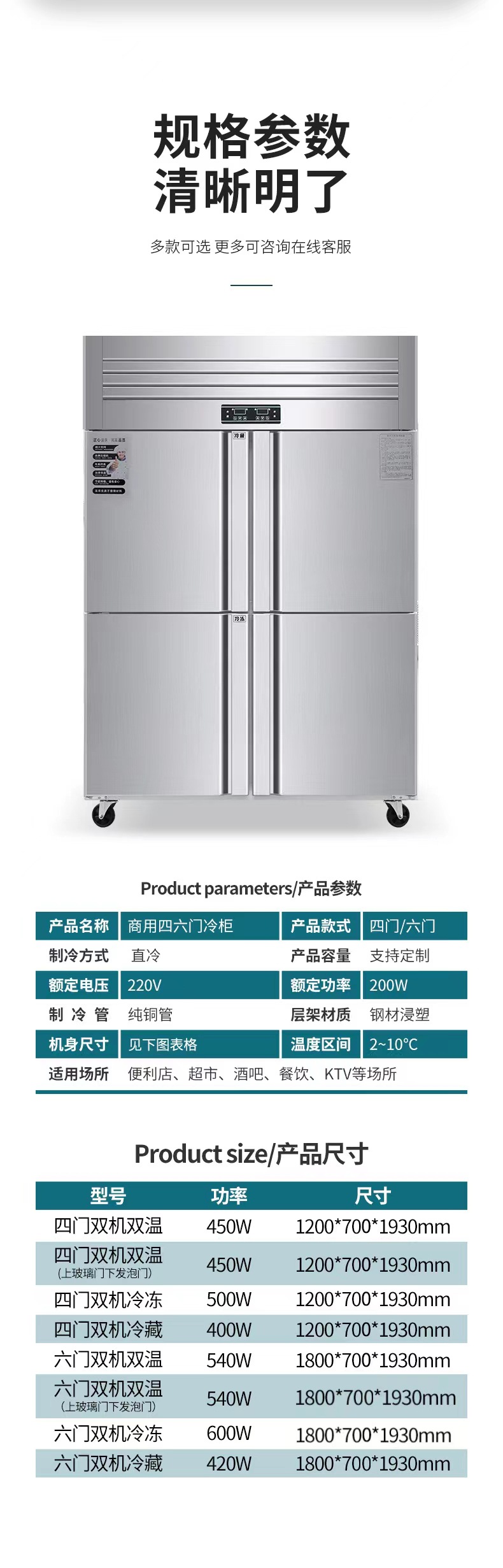 • 6 도어 이중 온도 (상부 유리 도어 및 하부 폼 도어) 1800*700*1950