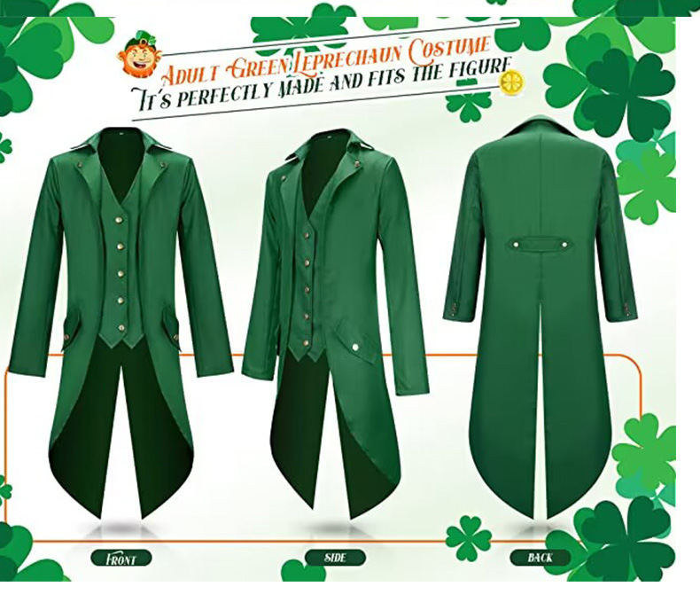 성 패트릭의 날 의상 엘프 의상 고딕 복고풍 스팀 펑크 테일 코트 고블린 모자 나비 넥타이