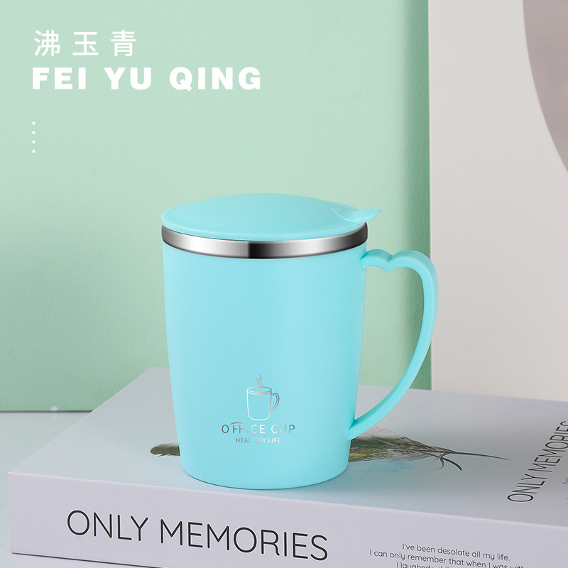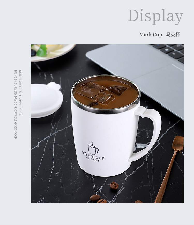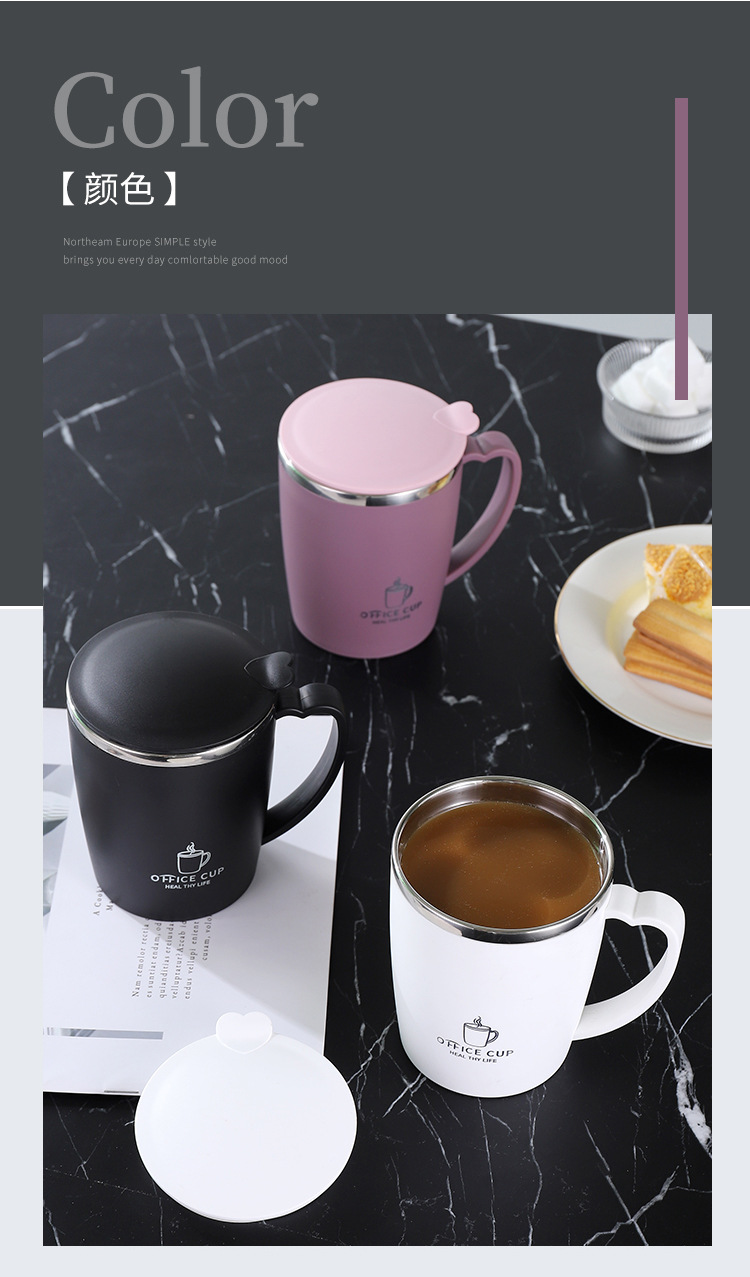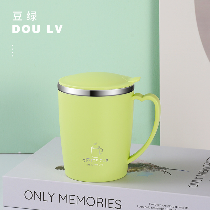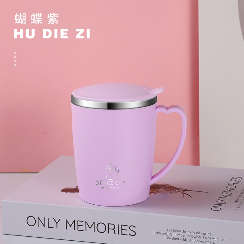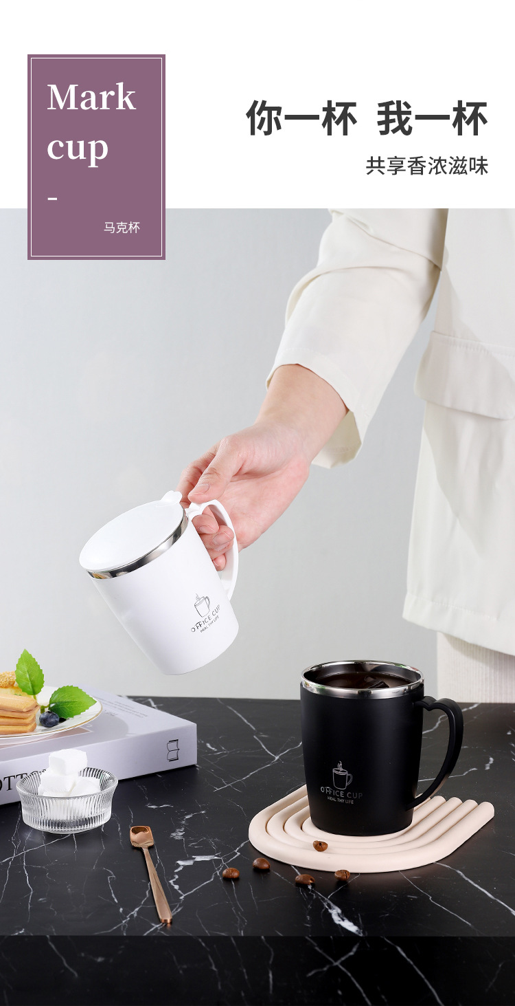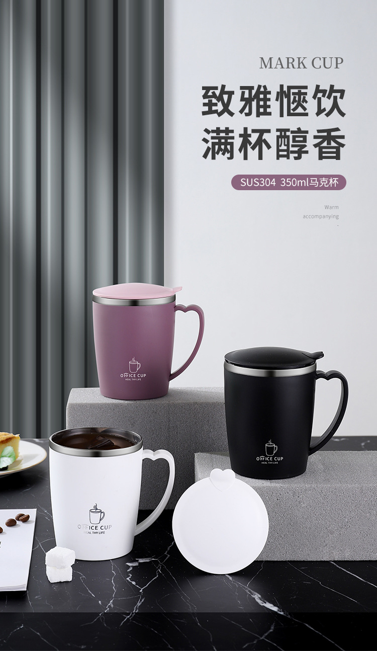 304 스테인레스 커피 컵 뚜껑 단열 간단한 야외 휴대용 컬러 물컵 고급 2 층 사무실