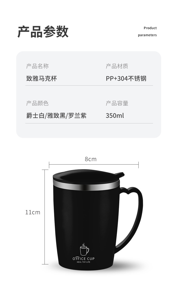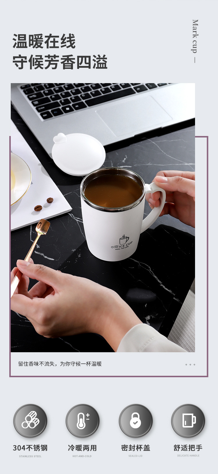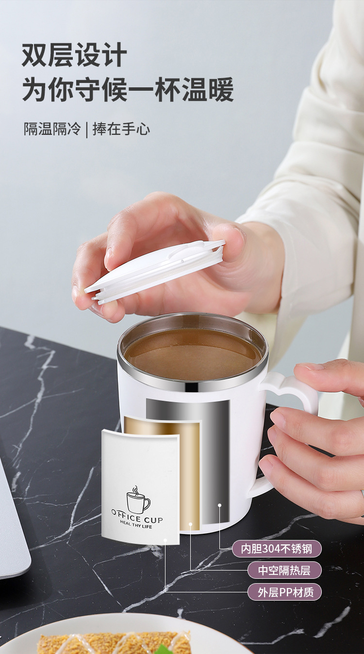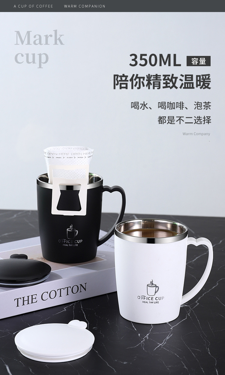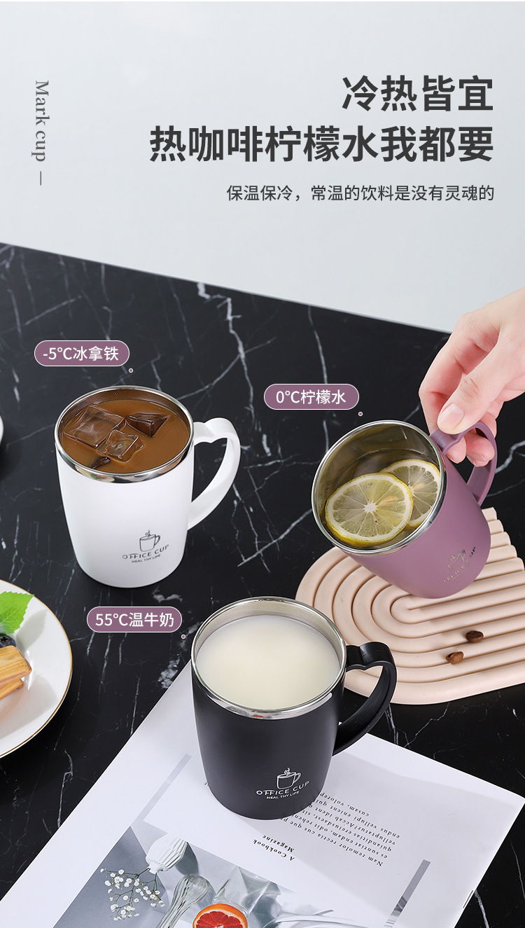 304 스테인레스 커피 컵 뚜껑 단열 간단한 야외 휴대용 컬러 물컵 고급 2 층 사무실