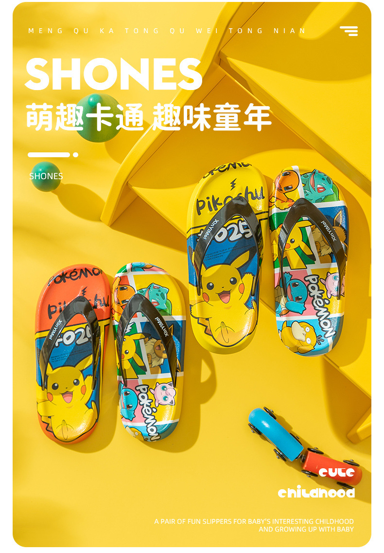 피카츄 어린이 슬리퍼 소년 여름 플립 플롭 비치 슬리퍼 만화 미끄럼 방지 슬리퍼 여자 부모-자식 샌들스토어 가기