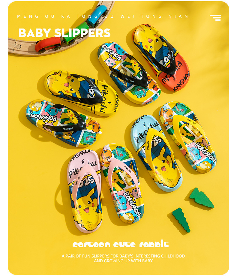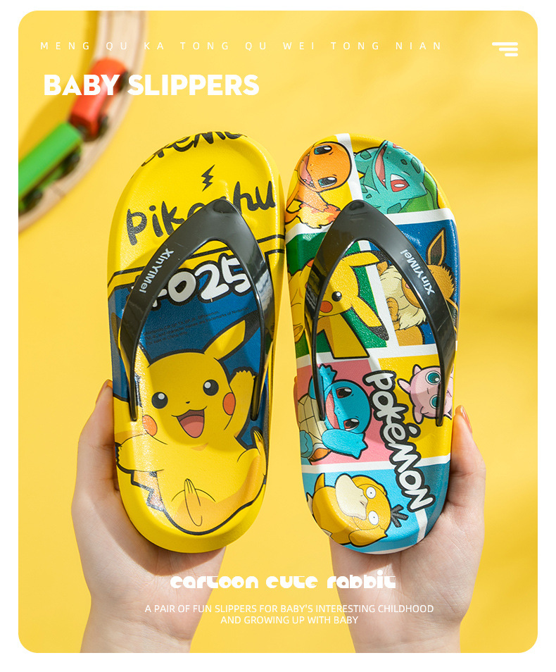 피카츄 어린이 슬리퍼 소년 여름 플립 플롭 비치 슬리퍼 만화 미끄럼 방지 슬리퍼 여자 부모-자식 샌들