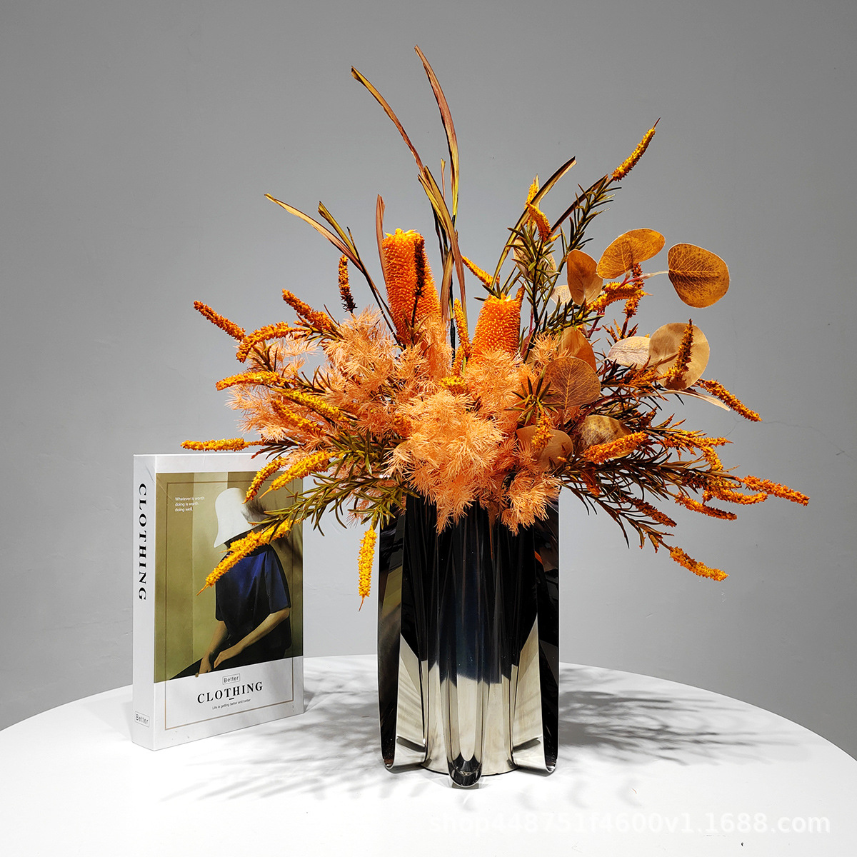 현대 조명 럭셔리 고급 시뮬레이션 꽃 장식 오렌지 가짜 꽃 거실 TV 캐비닛 장식 호텔 모델 룸 꽃 장식