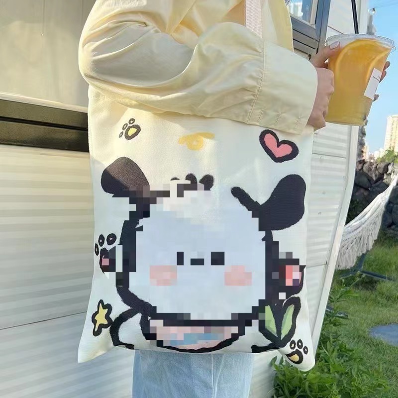 캔버스 백 여성용 원 숄더 크로스바디 대학생 책가방 대용량 환경 보호 쇼핑백 핸드백 코튼 백 만화