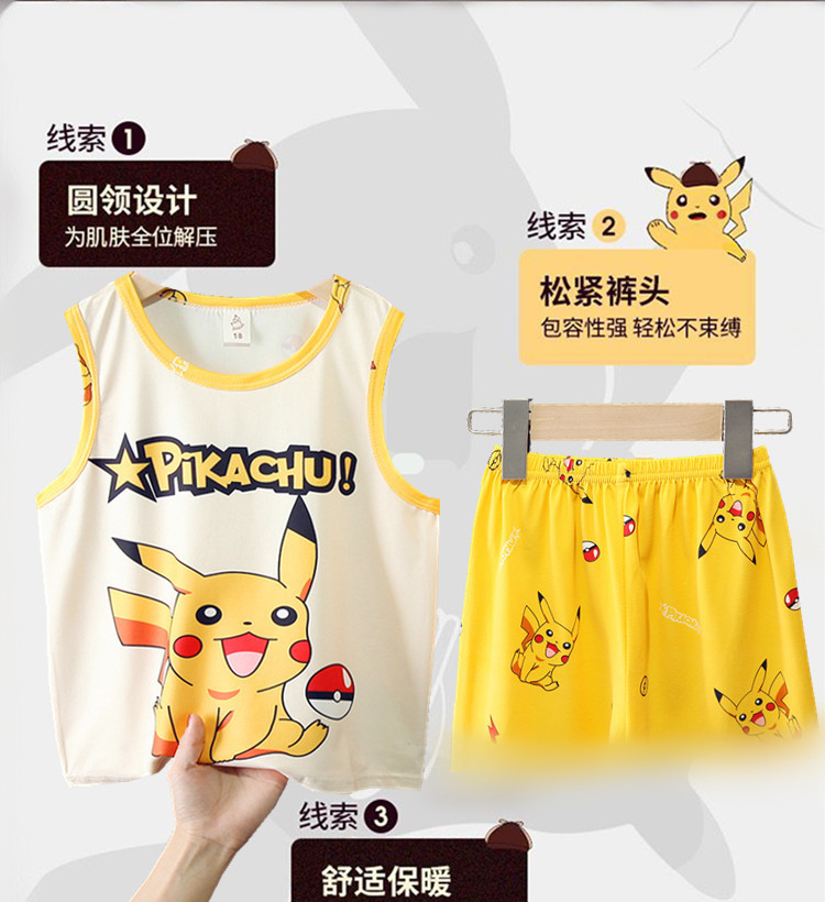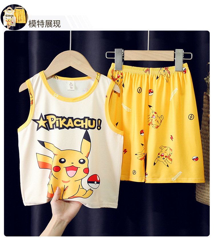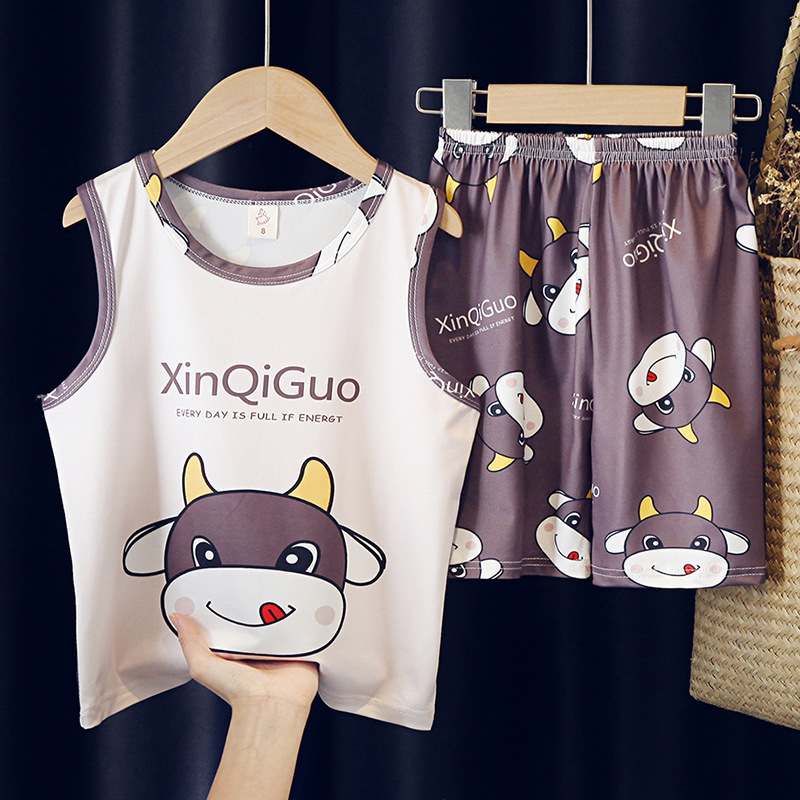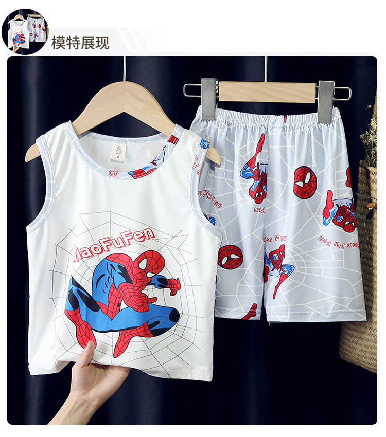 어린이 조끼 잠옷 세트 여름 소년 만화 중간 및 큰 어린이 가정 의류 초등 학생 얇은 에어컨 의류 도매