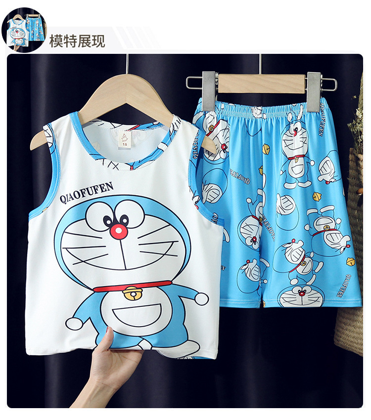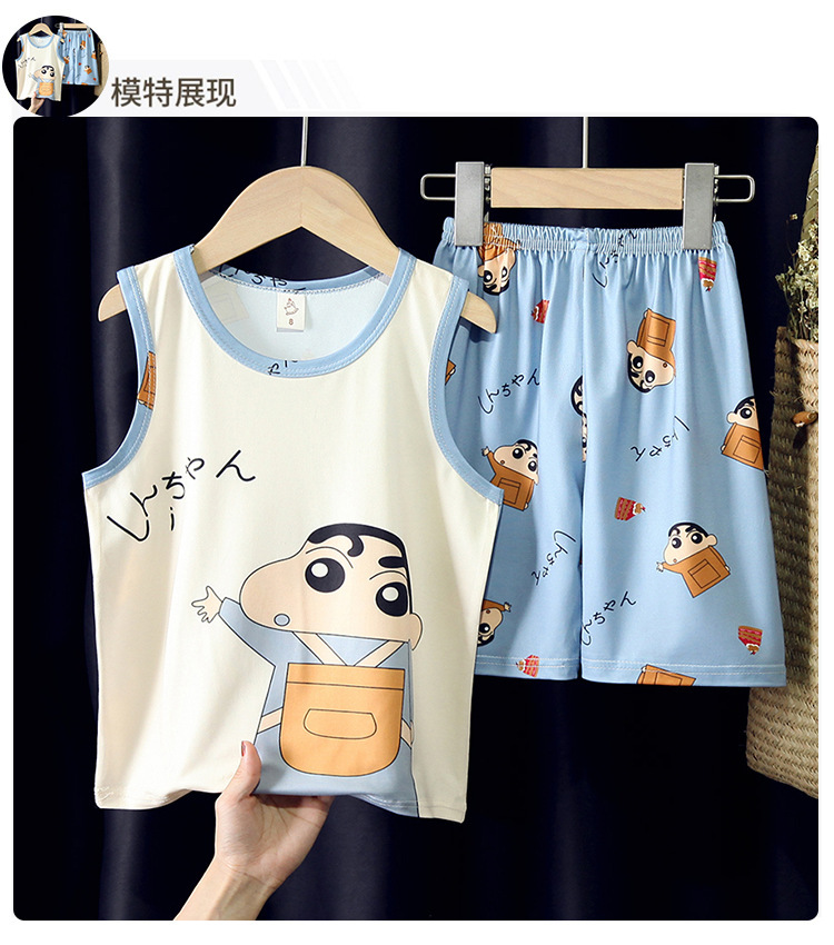 어린이 조끼 잠옷 세트 여름 소년 만화 중간 및 큰 어린이 가정 의류 초등 학생 얇은 에어컨 의류 도매스토어 가기