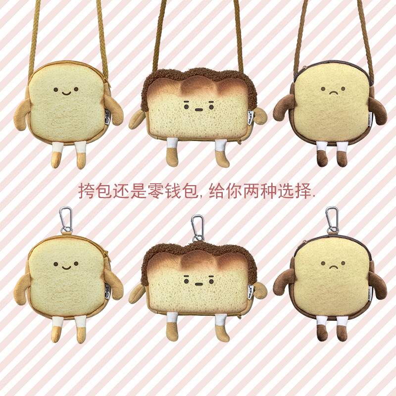 토스트 빵 동전 지갑 동전 가방 귀여운 만화 멋진 창조적 인 학생 여아 하트 크로스 바디 캐주얼 작은 가방스토어 가기