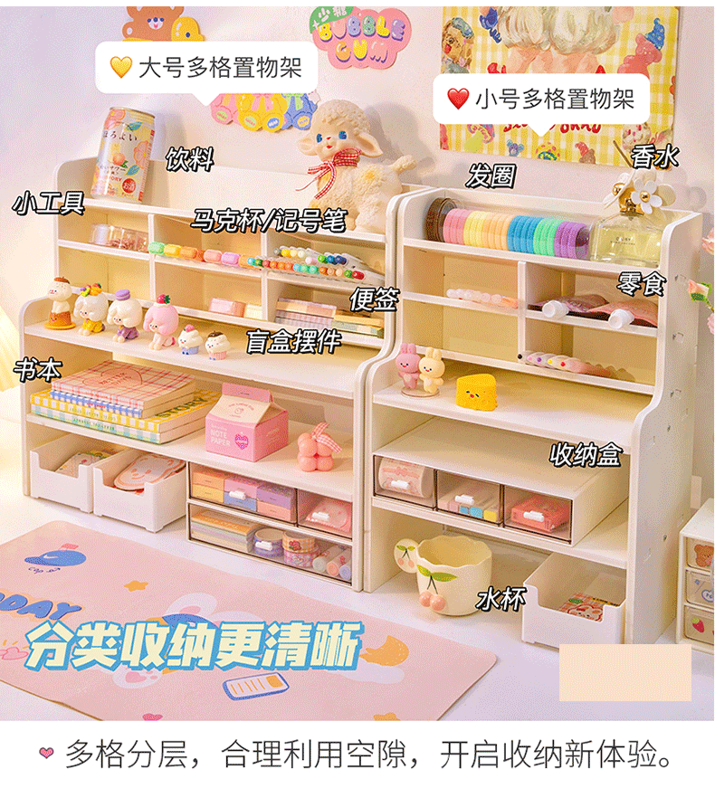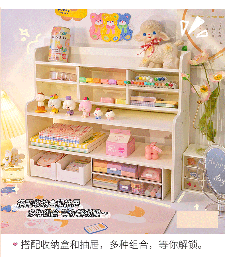 데스크탑 수납 선반, 화장품 수납 선반, 학생용 다기능 책상 높이 조절 선반, 다층 디스플레이 선반