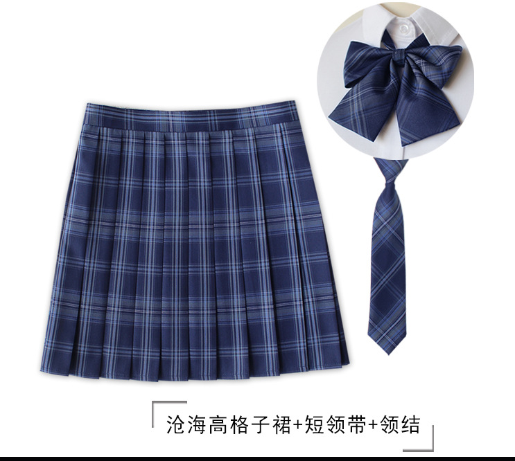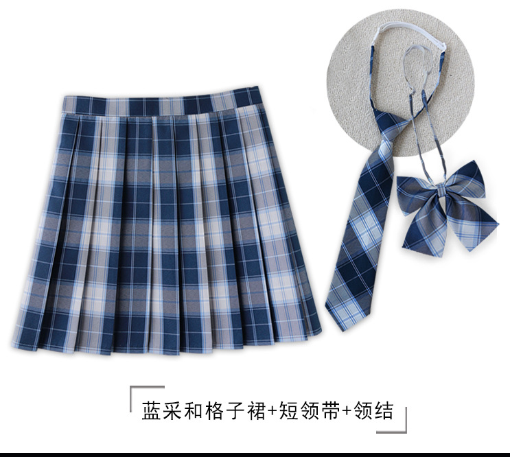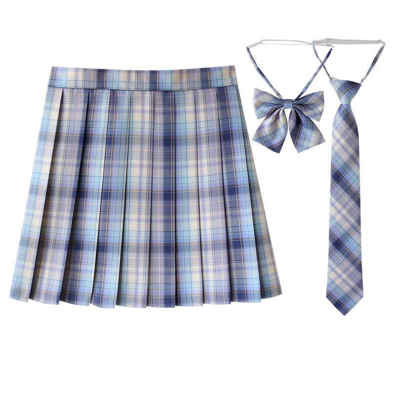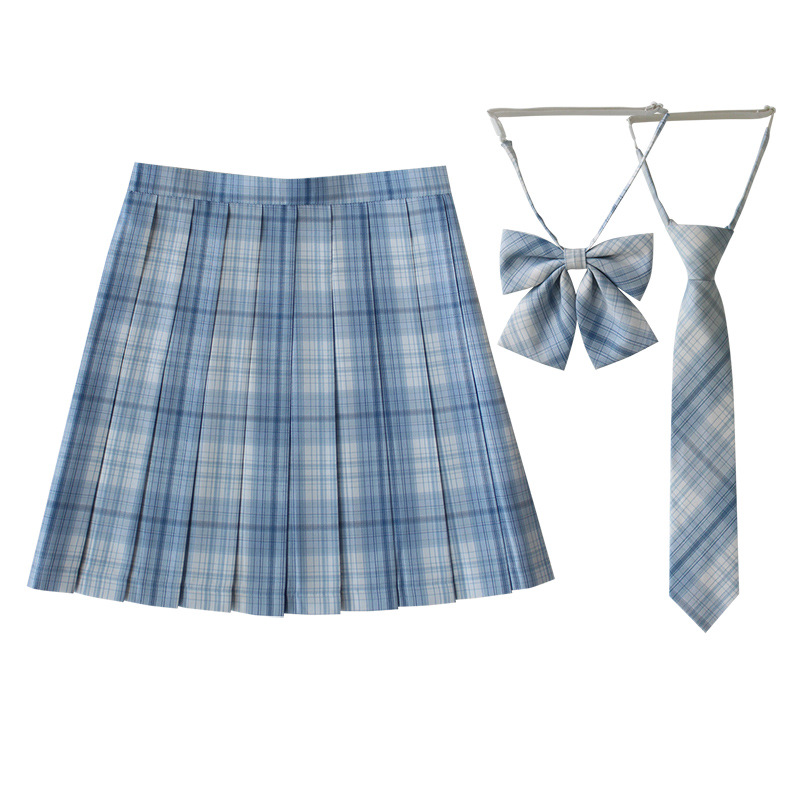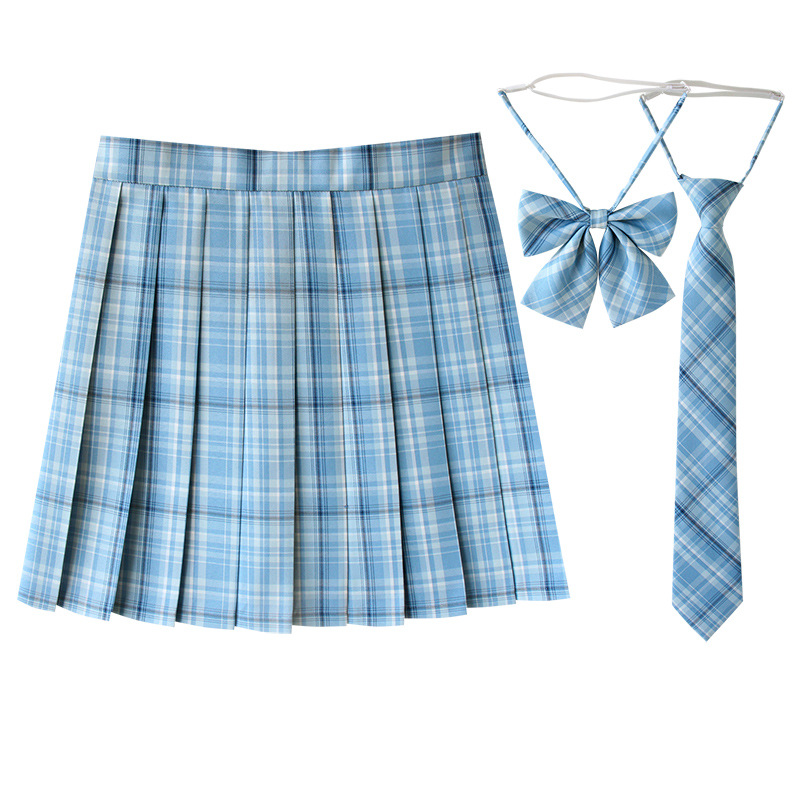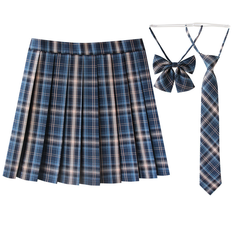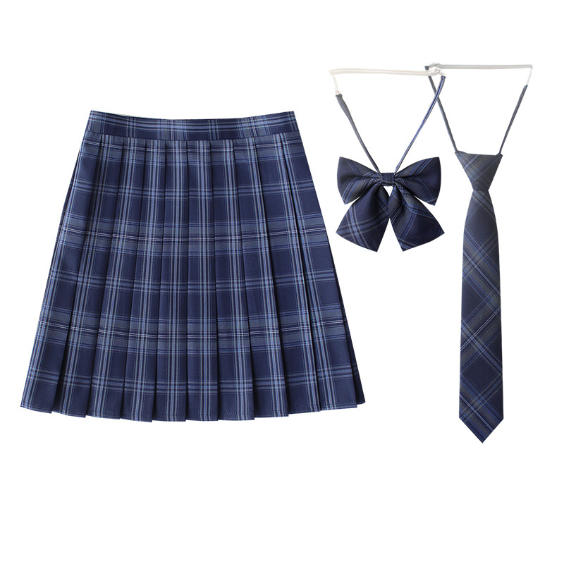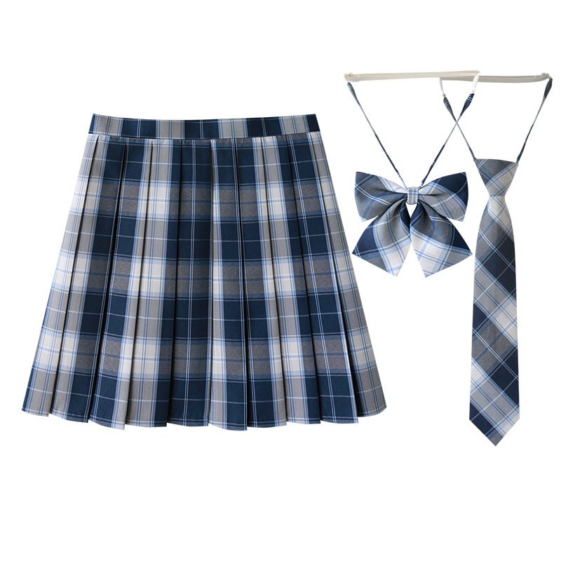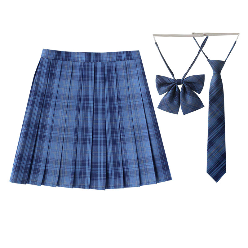 • 파란색과 격자 무늬 치마 + 짧은 넥타이 + 나비 넥타이