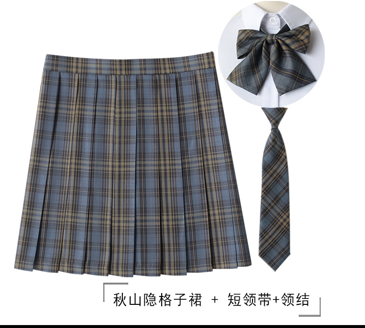 • 아키야마 히든 체크 무늬 스커트 + 짧은 넥타이 + 나비 넥타이