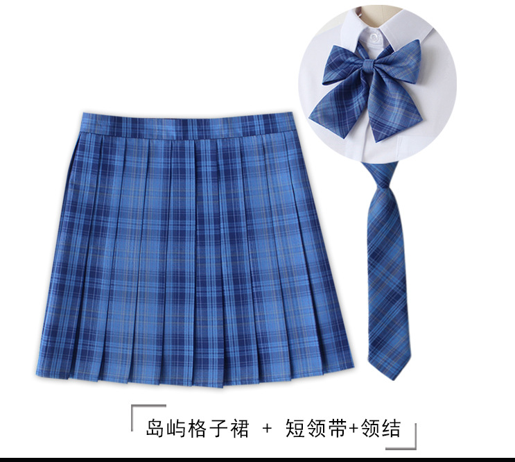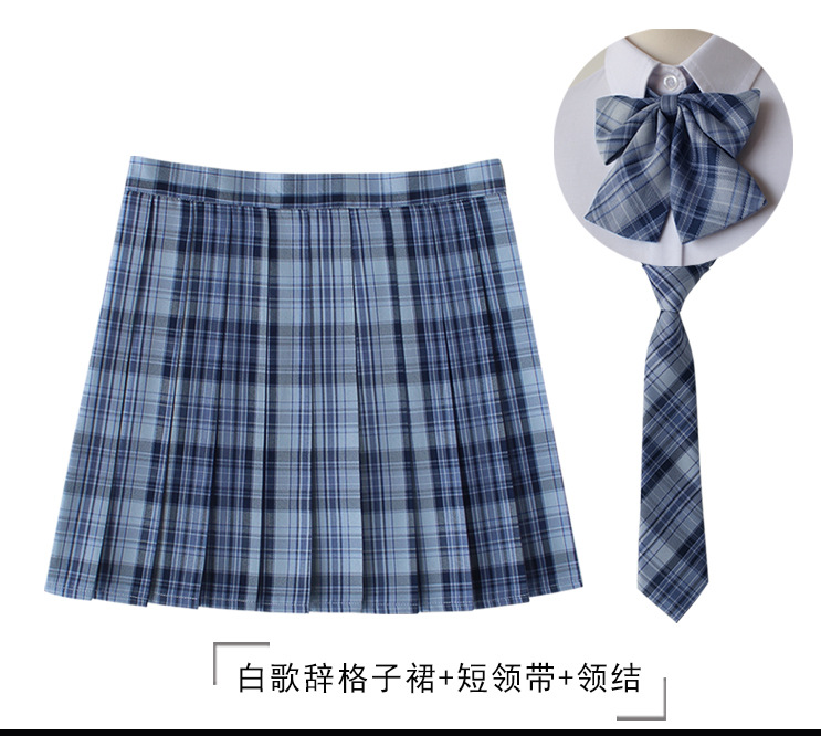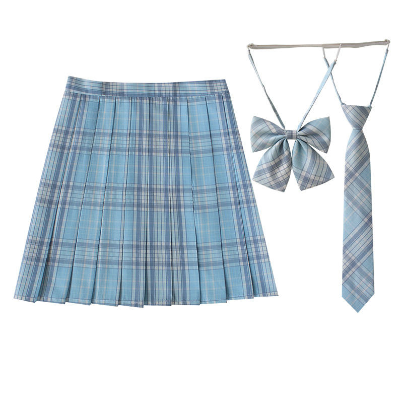 • 섬 격자 무늬 치마 + 짧은 넥타이 + 나비 넥타이
