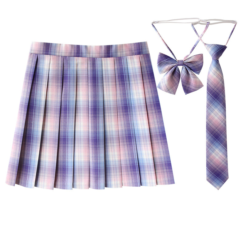 • 라벤더 체크 스커트 + 넥타이 + 나비넥타이