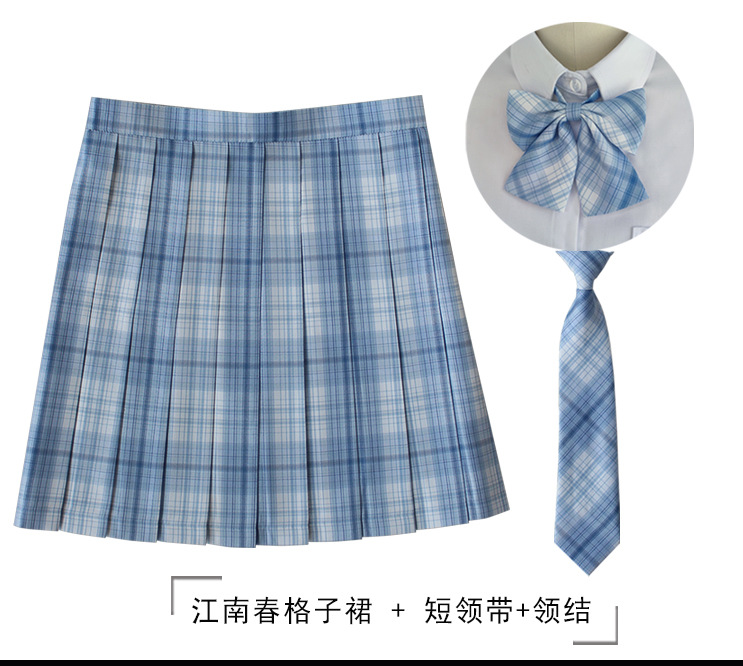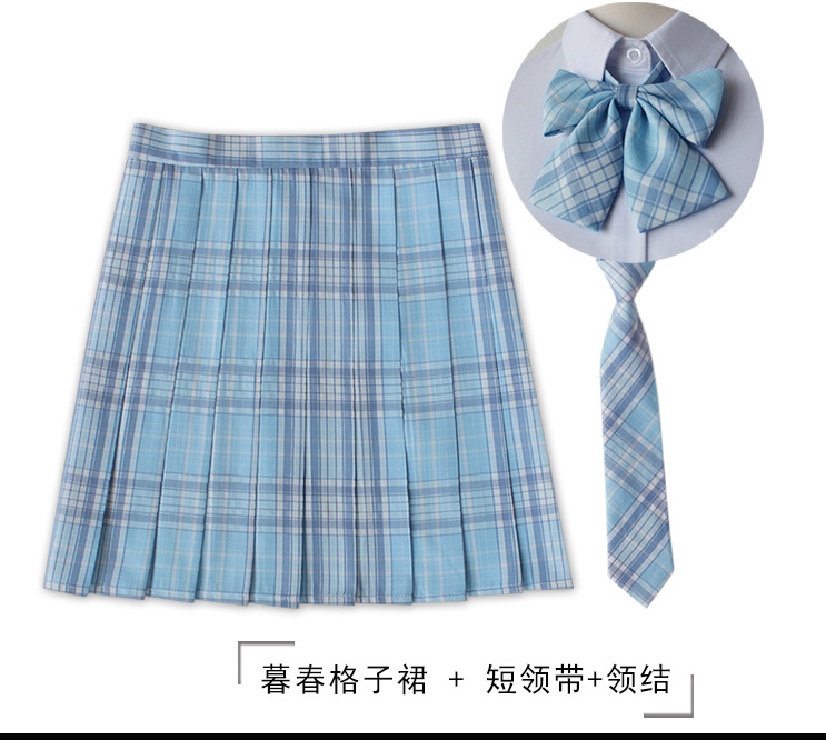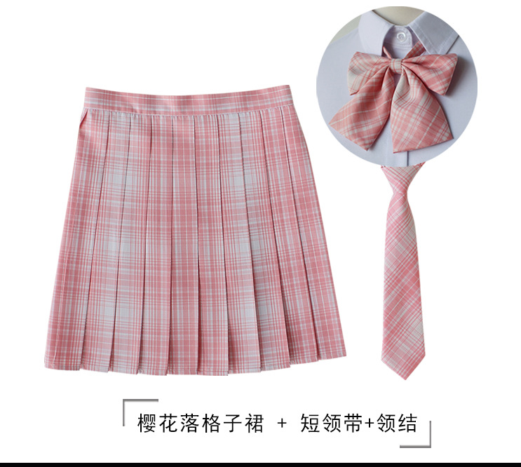 • 벚꽃 격자 무늬 스커트 + 짧은 넥타이 + 나비 넥타이