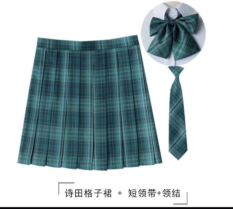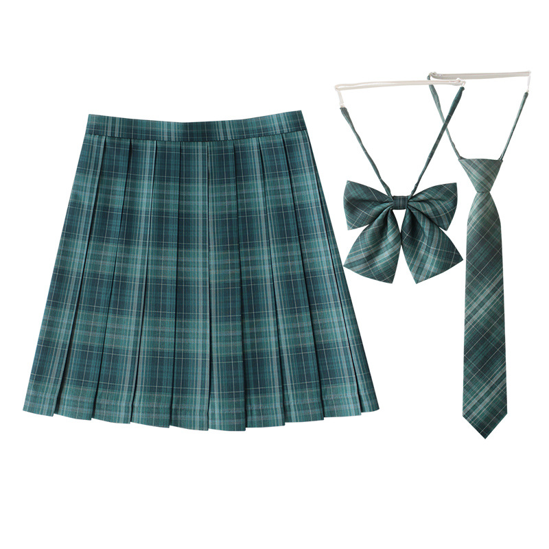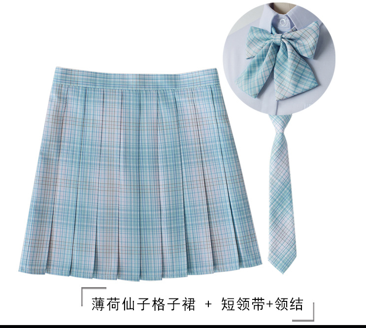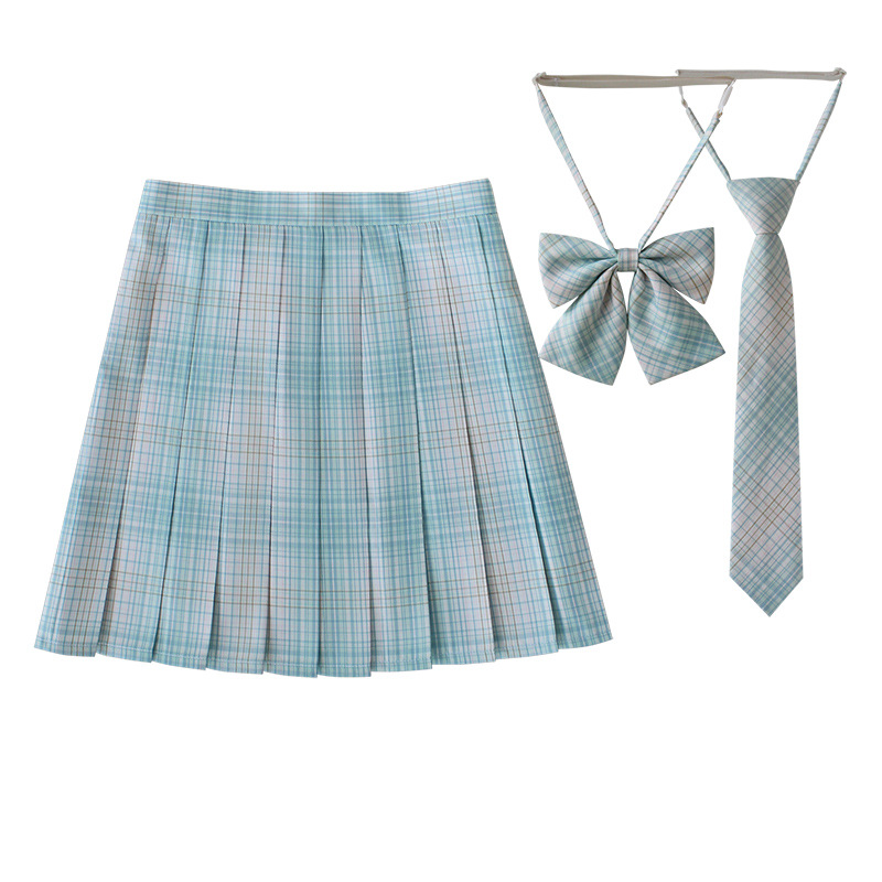 • 민트 요정 격자 무늬 스커트 + 짧은 넥타이 + 나비 넥타이